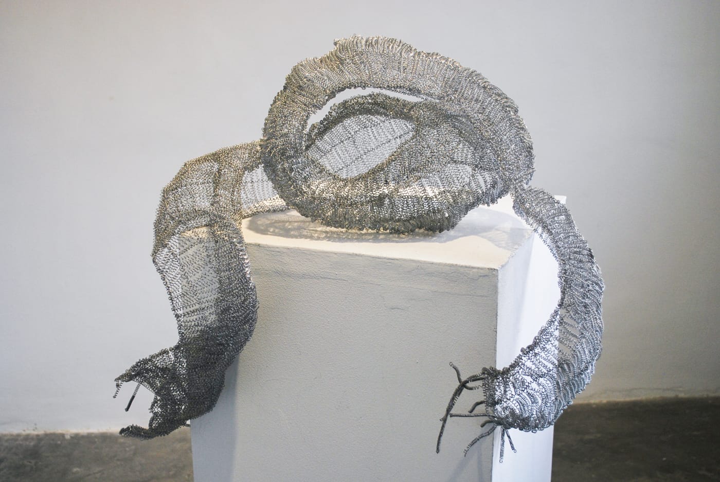 PHNOM PENH, Cambodia — Tith Kanitha’s solo-exhibition Instinct, at SA SA BASSAC, is a collection of endlessly suggestive sculptures.“Bright Future” (2017) could be an abstract sculpture of a witch’s hat, or perhaps a frayed textile, heavily used during arcane rituals. The possibilities are endless, and the exhibition is a pleasure to explore. All made of the same steel wire and through the same process, it’s a marvel the variation Kanitha evokes.
