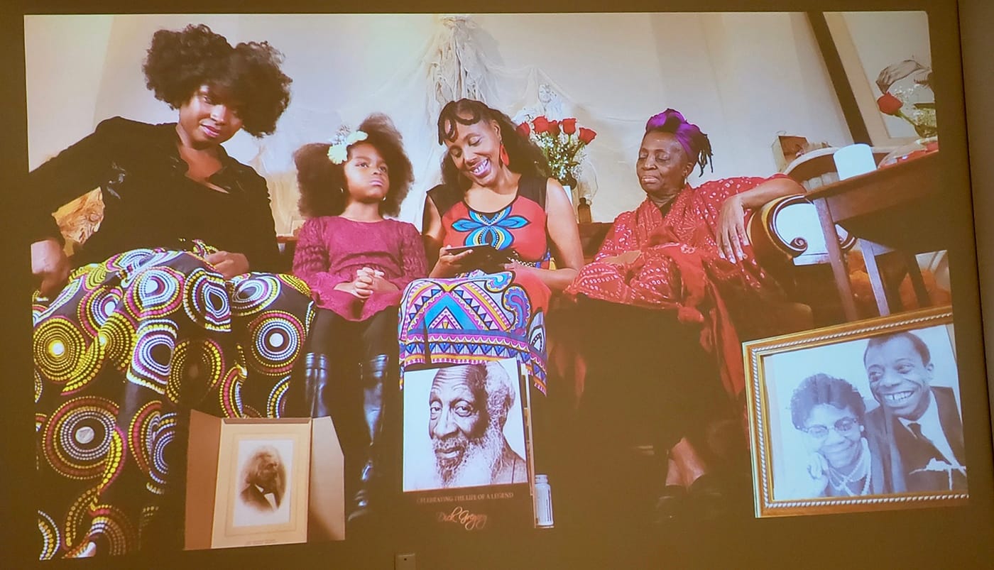 The Call features four female subjects in a kind of conversation, all of whom are the blood relations of Black civil rights activists: Melani Douglass and her daughter Ashera (descendants of Frederick Douglass), Ayanna Gregory (daughter of comedian and activist Dick Gregory), and Paula Whaley (sister of author James Baldwin). Over the course of the 17-minute film, the Douglasses, Gregory, and Whaley reminisce not so much about their name-brand family members as the host of women that provided a support system in myriad unsung ways. There is an acknowledgment of the great men that fought to make progress on behalf of the Black community, but moreso an acknowledgment that a great deal of the emotional and practical labor of activism and social progress is made by women, and goes unrecognized.