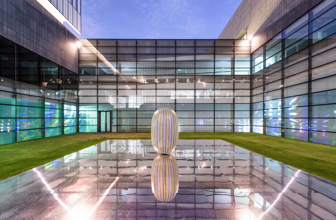 Kimsooja’s practice, which emphasizes stillness of mind and the similarities between different cultures, is an attempt to offer some resolution in these times of war, paranoia, fear, and discrimination. However, her oval-shaped multicolored sculpture Deductive Object (2016), which is placed on a highly reflective surface in MMCA’s outdoor quadrangular space, is less compelling. Though the conceptual piece is inspired by the sacred Indian stone that historians refer to as the “egg of the universe,” and though it is meant to contain pellets of energy, it does not have the resonance of her participatory installation, nor does it evoke the visual tactility of her films.