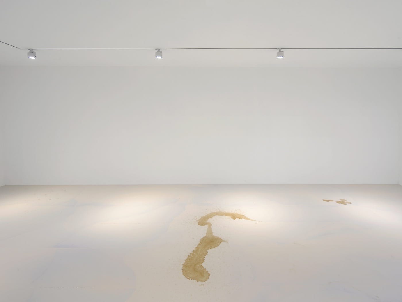 Produced by Gasworks in South London, Bradley has transformed the gallery’s interiors with a tonic-infused resin meant to ameliorate the encroaching forces of capitalism assailing the art world. Although it may sound ridiculous, this hippie-dippy endeavor has spent significant time in the planning stages. Rooted in a feminist lineage of institutional critique, Bradley is interested in reviving the autonomy of individuals within patriarchal organizations and arguing for a revival of more spiritual strains of thinking against the cold logic of capitalism. To accomplish this project, she enlisted the help of her sister, Lucie Bradley, a medicinal herbalist based in Glasgow. Before the exhibition opened, both had interviewed the gallery’s employees about their jobs, creating the trademarked and patent pending Infinite Resistance™ ointment that now lacquers the gallery’s floors as a salve.