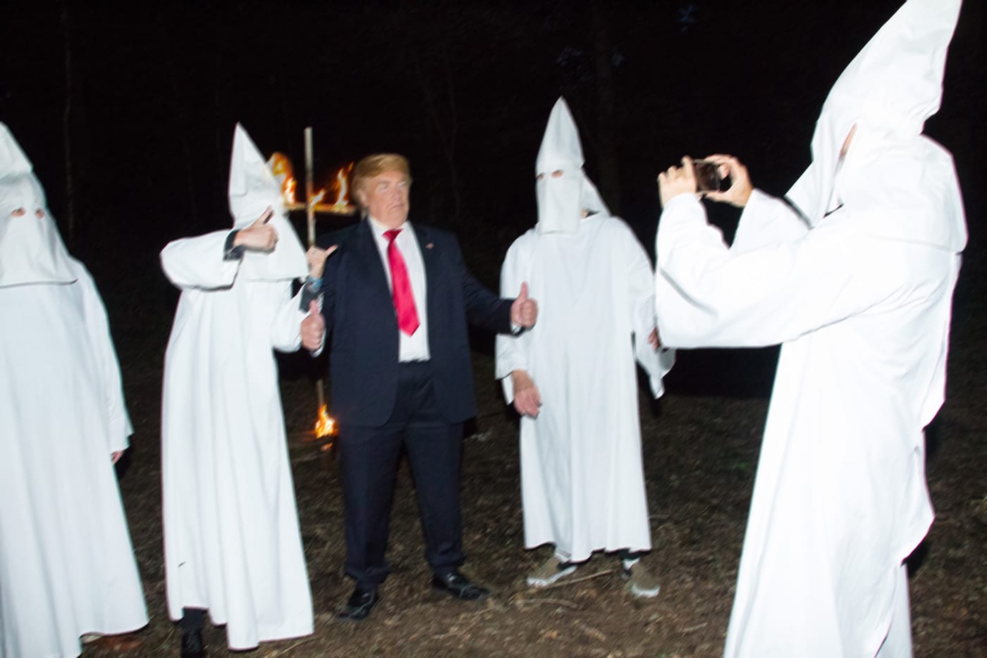 Some of the images have appeared online in publications such as Vanity Fair and the Guardian, which posted — to Jackson’s surprise — the two images that drew the most legal concern: one of the KKK and another showing Trump with a rifle, his nearby targets decorated with a sombrero and a Hillary Clinton mask. HG Contemporary also hosted a six-day exhibition of 17 of the photographs in October, although “curation was very careful, and some of the tougher images were omitted,” Jackson said.