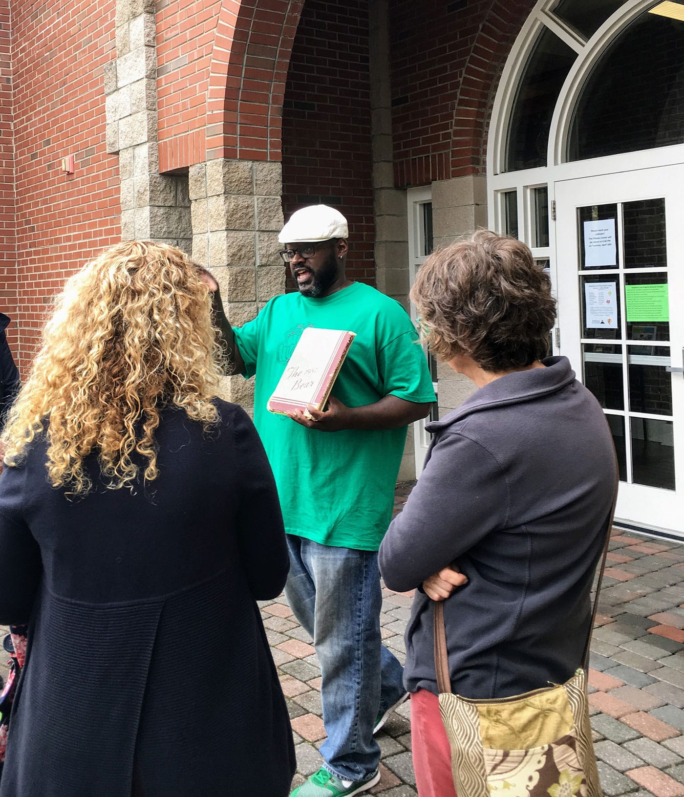 The tour began two years ago, when Barton was looking for a way to start a business that would combine his passions for art and social justice. “Art validates the story” of injustice and abuse, he says. “It also has a healing component.” To that end, spoken-word poetry performances by Barton himself and interludes by local musicians are peppered throughout the tours. “In the state of Black Asheville / Smoke-puffing metal dinosaurs seek out whom they may destroy,” begins one of his poems, titled “Regentrification Park.” For Barton, these elements are essential, because they help the local black community, whose history has been erased, rebuild its sense of self. And instead of lecturing people on this very real issue, he “uses art as an expression of one’s position creatively.”