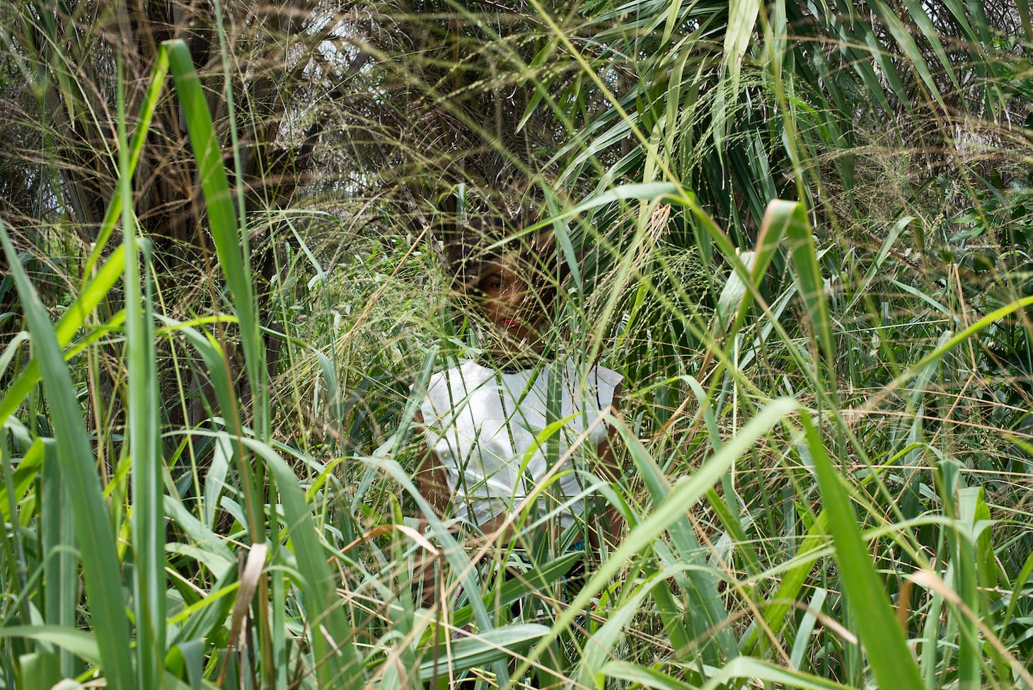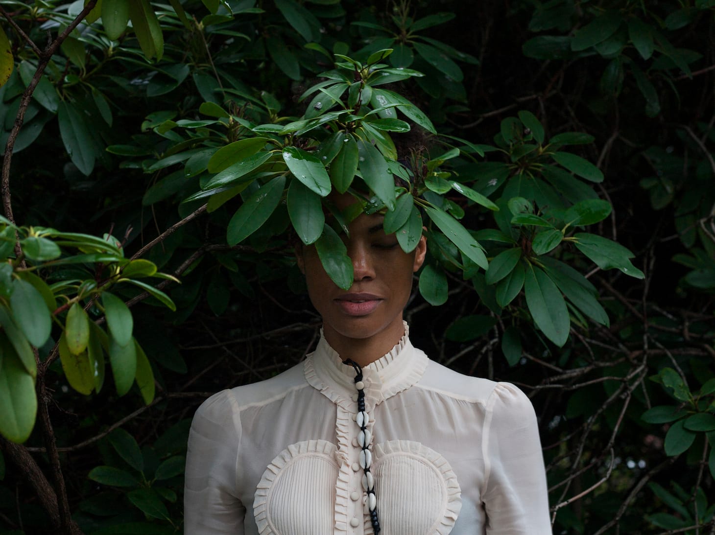 Opoku’s self-portraits are printed in color on photo rag and in black-and-white on paper and textiles. Her face is often obscured by the natural world. “I am interested in using greenery and the interplay with hidden or partly covered faces… to keep a level of curiosity about what we cannot see,” she explained. “It stands for an identity constantly changing, adapting, and searching to fit in. Also, to stand out to become one with the backdrop, blending in, moving, and transcending. That is the embodiment of a global identity.” In these lush images nature is a type of veil, a compelling and unusual metaphor to explore contemporary identity and humans’ relationship to the natural world.