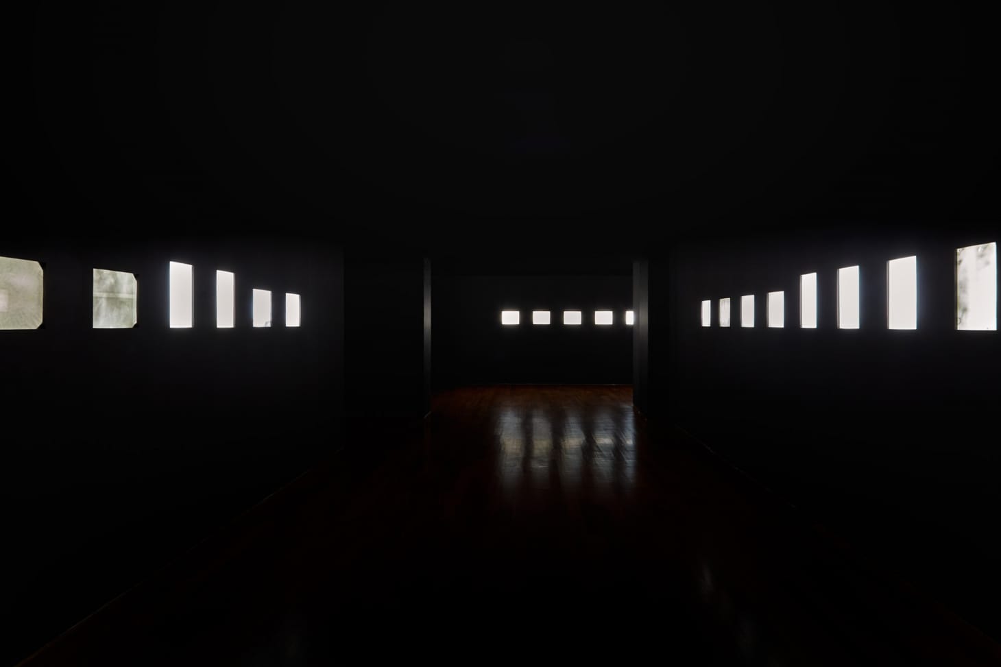 The lack of a conventional focal point or frame means there’s a lot happening all over, which in other artwork might be distracting or even frustrating to a viewer yearning for compositional direction or grounding; “fragment of a roof I – 3.168 µSv (17.11.08 – 21.01.09)” looks like scattered stars in the night sky. My favorite of the pictures, “fragment of a field V – 9.120 µSv (07.05.09 – 21.07.09),” on the middle wall of the back room, includes what looks like cupped hands at the right edge of the frame.