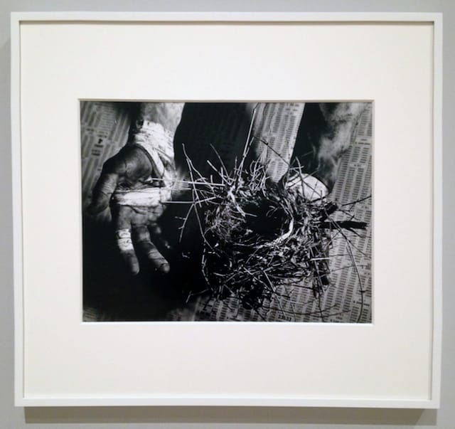 It is intriguing to note that perhaps the most entrancing room was one that the curators decided to leave context-free, where there is no wall text and the artworks, mostly photographs, are apparently grouped intuitively. This is where the Wojnarowicz is hanging, and beside it is “Failed Portrait” (2013), a highly evocative gelatin silver print by Eileen Quinlan in which a blank gray field is bracketed by a mysterious pair of abstract smears.