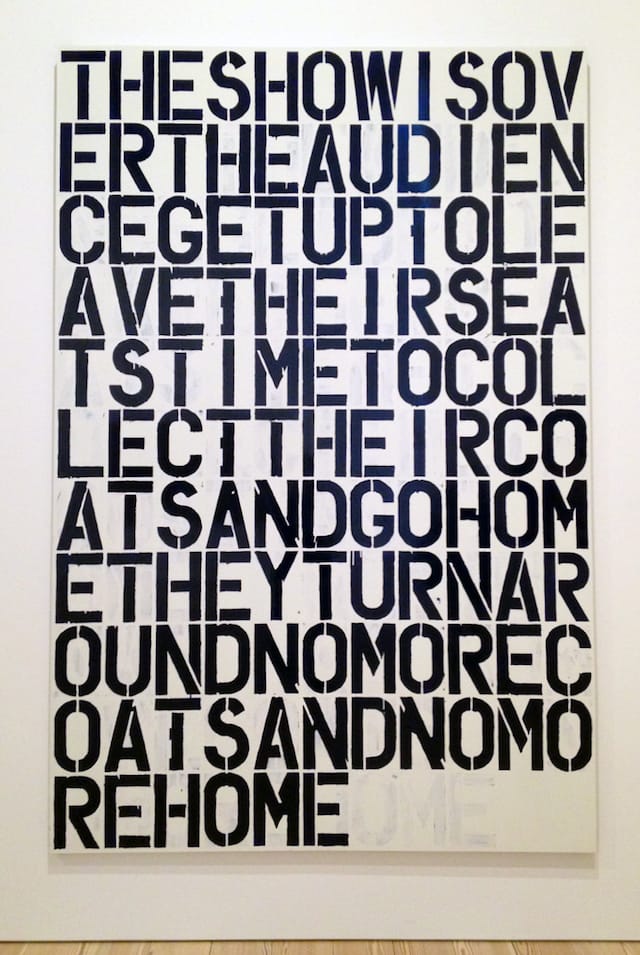 Those demarcations aside, the biggest dividing line running through the show is between those works that proceed from life (including experience, imagination and the material stuff of the artwork itself) and those based on a conceptual twist — not art pour art but art about art.
