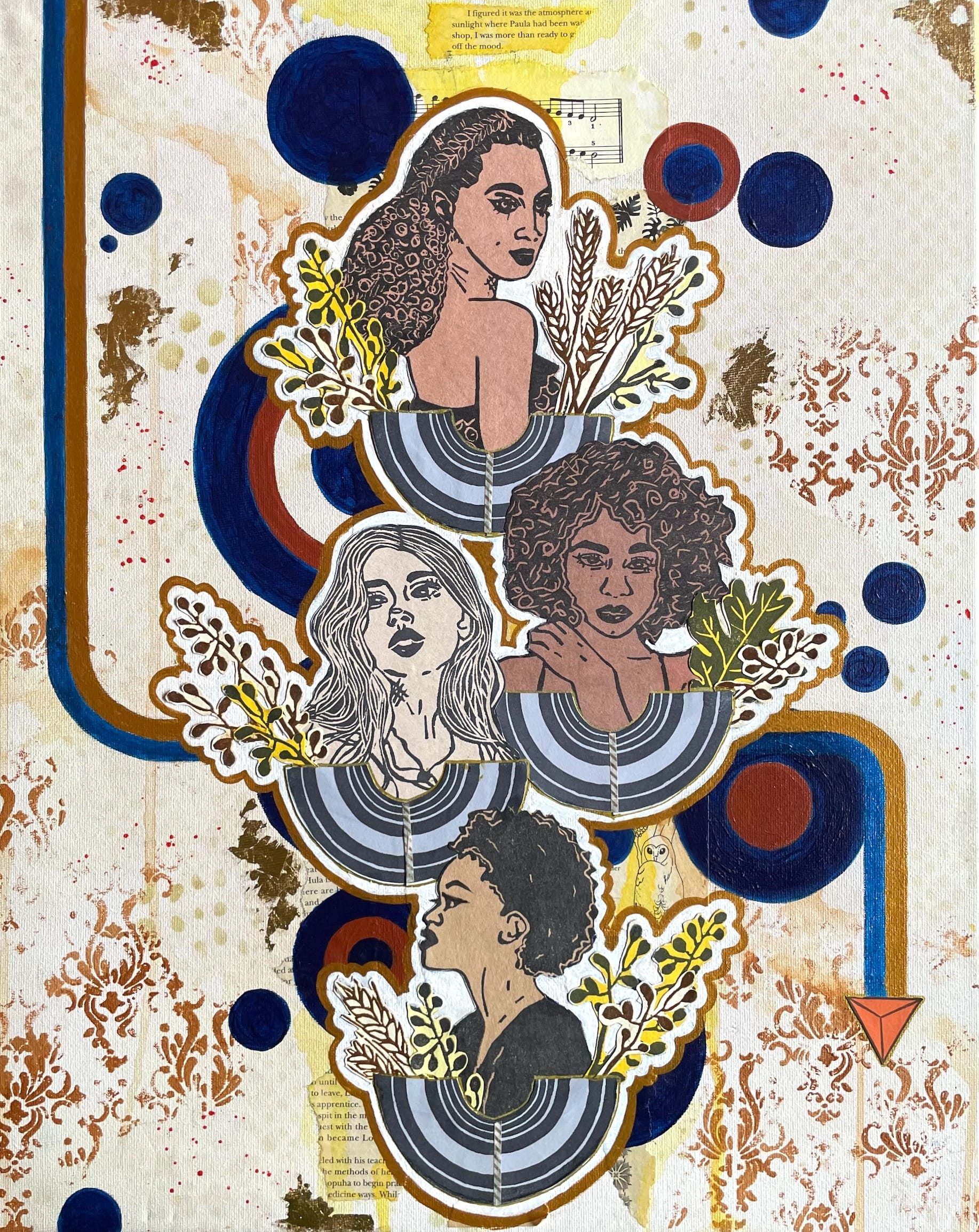 The 2023 Open includes an especially strong showing of works that carry social implications, such as Don Hershman’s “Code-Switching I” (2023). Rendered in acrylic, ink, and pencil on wood panel, the painting is titled after a term that references how some individuals, including LGBTQ+ people, adjust their speech and demeanor in social situations. The human figure, another theme of the show, featured Devorah Jacoby’s idiosyncratic and sensitive mixed-media portrait “Butterfly II” (2019).