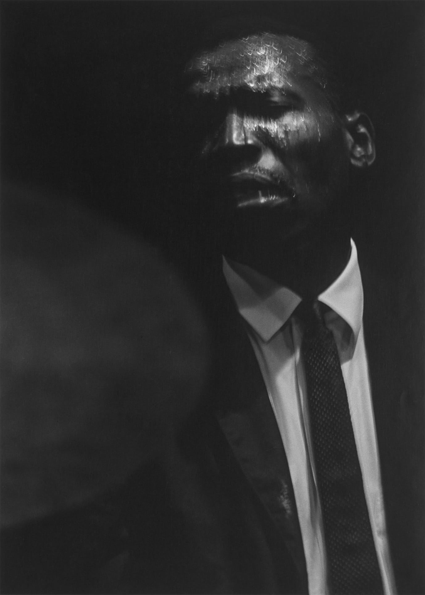 If you’ve seen an image of a Black jazz musician, eyes closed, his head lost in rapture, face awash in sweat, his ebony skin almost becoming silhouette but for the coruscating light against the statuesque bones of his face and the monsoon over his brow, then you have seen Roy DeCarava’s photography. “Elvin Jones” (1961) is one of DeCarava’s best known images and tends to stand in as that rare kind of photography that blends together documentary, celebrity sightings, an introduction to the mysteries of jazz, and highly aestheticized depictions of the poetic structure of an urban world at night. Indeed, for most viewers the draw to the concurrently running shows at David Zwirner gallery, Light Break, and the sound i saw, might be the work contained in the latter show (which has the image of Jones), focused as it is on musicians in the Jazz scene. But the other show, Light Break, which offers much more to look at (100 prints versus 30 in the other show) also lets us look differently at DeCarava’s work.