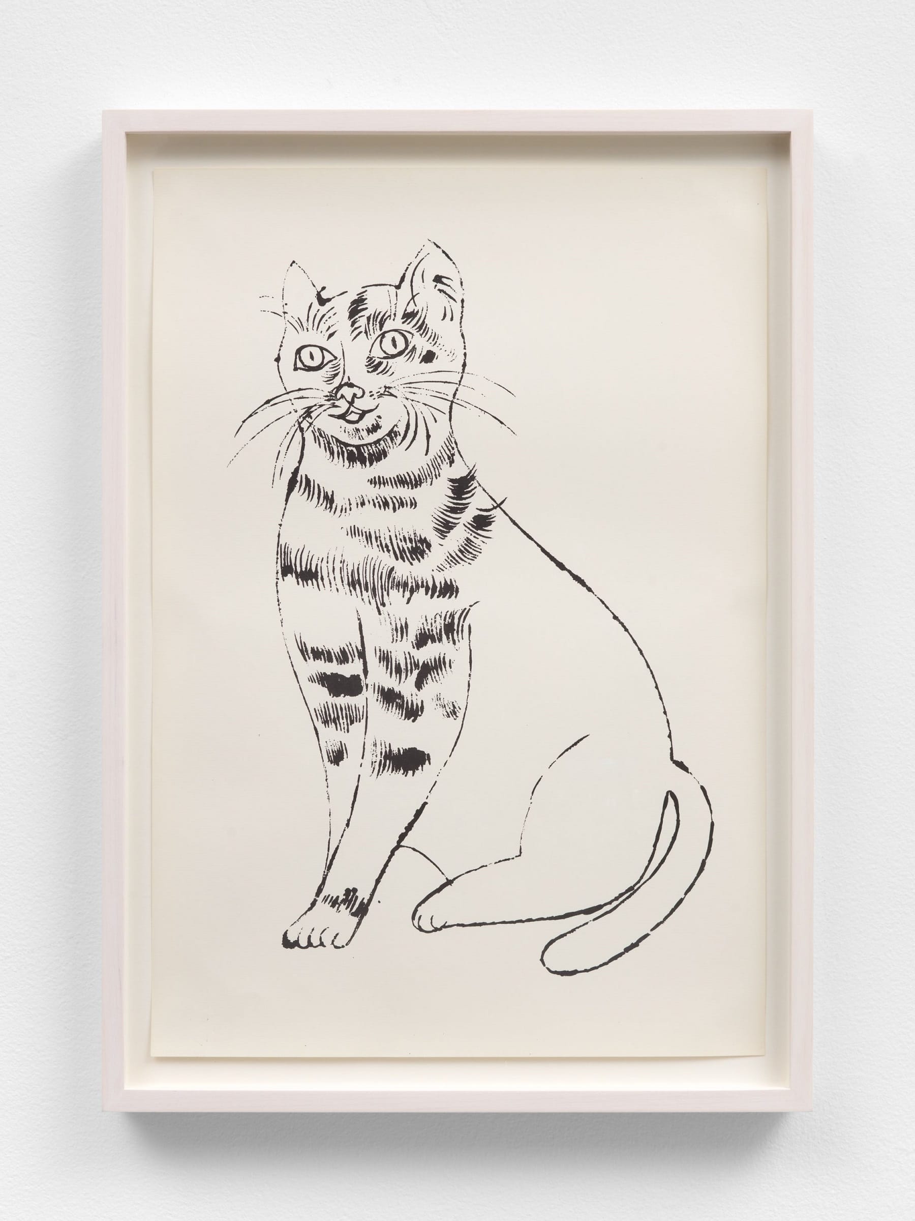 The show's title, Even a Cat Can Look at the Queen, comes from an old English proverb implying that even people of the lowest status — as low as a cat — have rights. After gazing at the works in the exhibition, however, the proverb seems too on-the-nose. With their distinguished attitudes and regal postures, it's quite evident cats can "look at the queen." As Anna Stothart notes in her essay for the show, perhaps the ancient Egyptians were right: Dogs may be man's best friends, but cats are humans' idols, and although they may bless us with companionship, we exist only to serve them.
