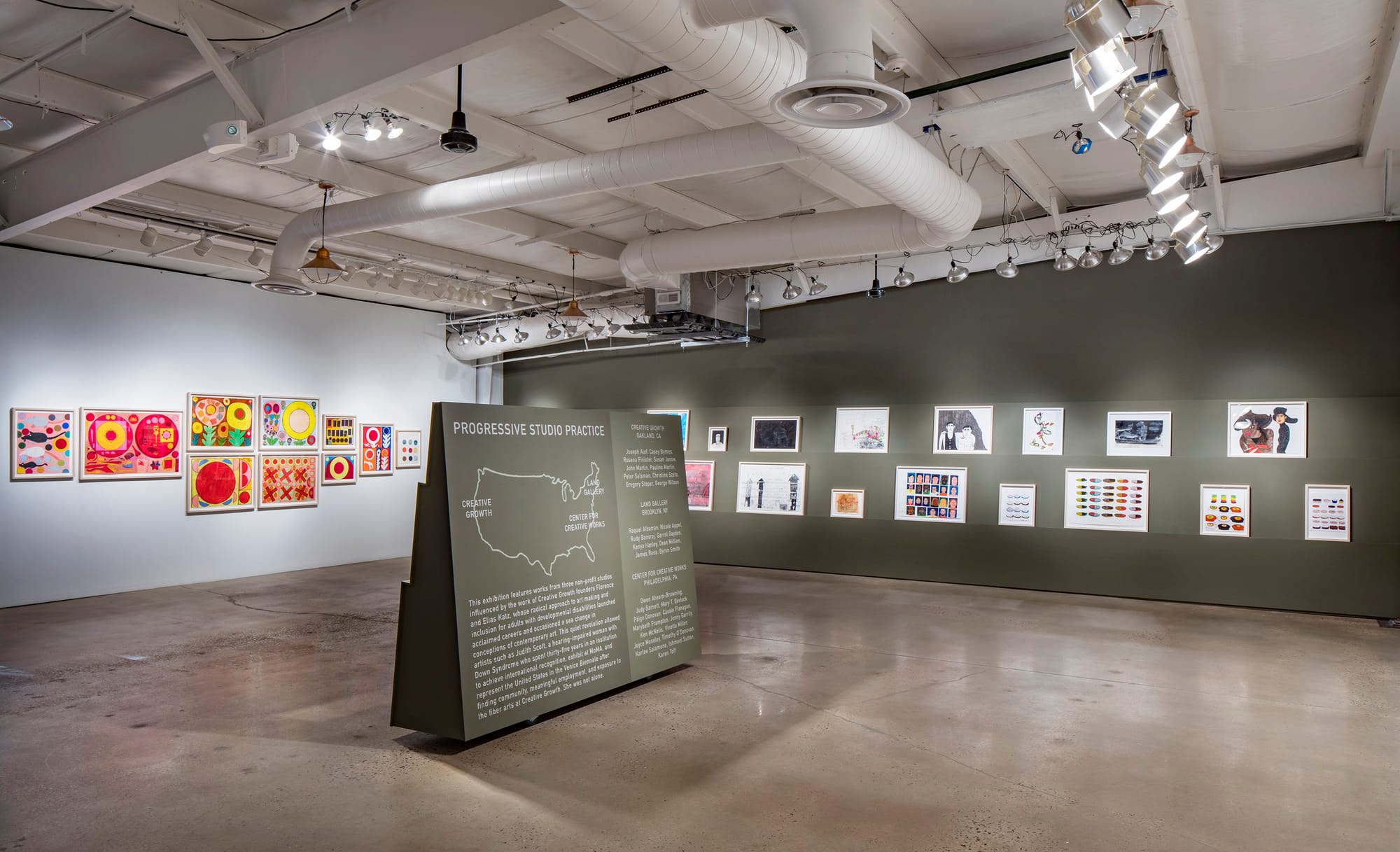 The model for what is called progressive studio practice began in 1974 at Creative Growth Art Center in Oakland, California. In what would prove to be a revolutionary approach, founders Florence and Elias Katz provided professional studio space, materials, and assistance to adults with developmental, mental, and physical disabilities. What the center’s staff did not do was tell the artists what to make, or how to make it. Over the span of months and years, many Creative Growth artists developed strong visual languages, created significant bodies of work, and attracted avid collectors. Perhaps the most recognized artist is Judith Scott, who was both profoundly deaf and had Down’s syndrome. After being institutionalized and considered ineducable for 35 years, Scott came to Creative Growth, where she flourished. Her work is in many museums, including MoMA, and she was chosen to represent the United States in the 2017 Venice Biennale. “There was something different about [Creative Growth’s] conception,” says Jill Kearney, “and as people were exposed to it, it really resonated.”