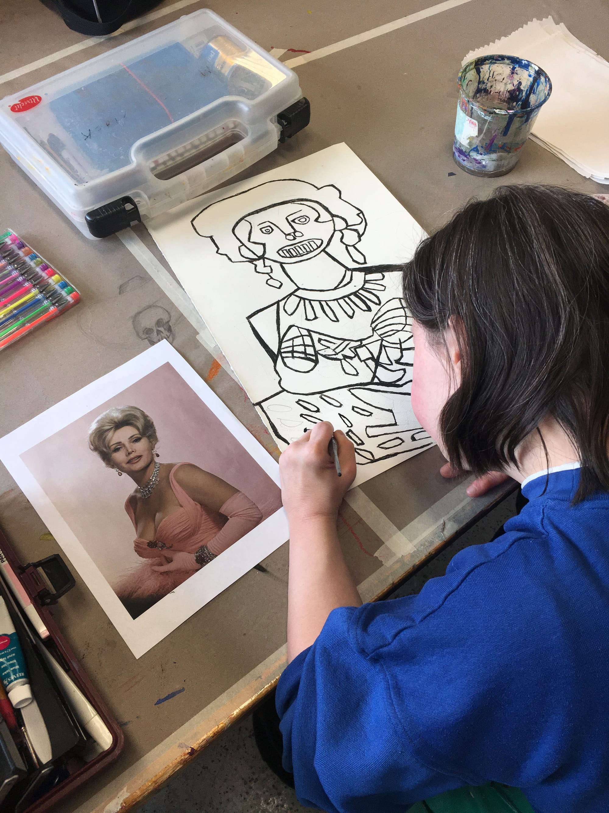 FRENCHTOWN, New Jersey — Paige Donovan, a self-possessed 27-year-old artist, takes my hand and leads me to a flat file, where she shows me her latest artwork. There’s a carefully composed drawing of three skeletons in a landscape, a drawing of a mother and daughter embracing, and one of a square pink house with a chimney. I ask about the pattern of colored triangles on either side of the house. “I like painting landscapes,” she says. “It’s all the different leaves and flowers. I like summertime.” So do I. Donovan is a full-time artist working primarily in calligraphy ink. She shows and sells her work, gives workshops, and makes art nearly every day at the Center for Creative Works, a progressive art studio in Philadelphia for adults with developmental disabilities. ArtYard, a contemporary art center in Frenchtown, New Jersey, is featuring pieces by Donovan and 30 more artists, all of whom work in progressive art studios.