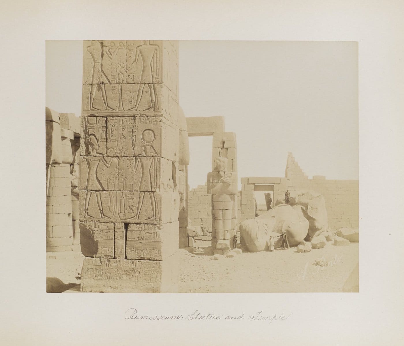 One of the masters of this type of photography was Antonio Beato (1832–1906). His Collection of Photographs of Egypt and Nubia, now at the Brooklyn Museum Libraries and Archives, contains numerous photographs dating from around 1860 that exemplify this style. Beato and others like him contributed to a grand vision of Ancient Egypt that remains fixed in the Western European consciousness to this day. It seems almost impossible to imagine that alternative visions exist — but they do.
