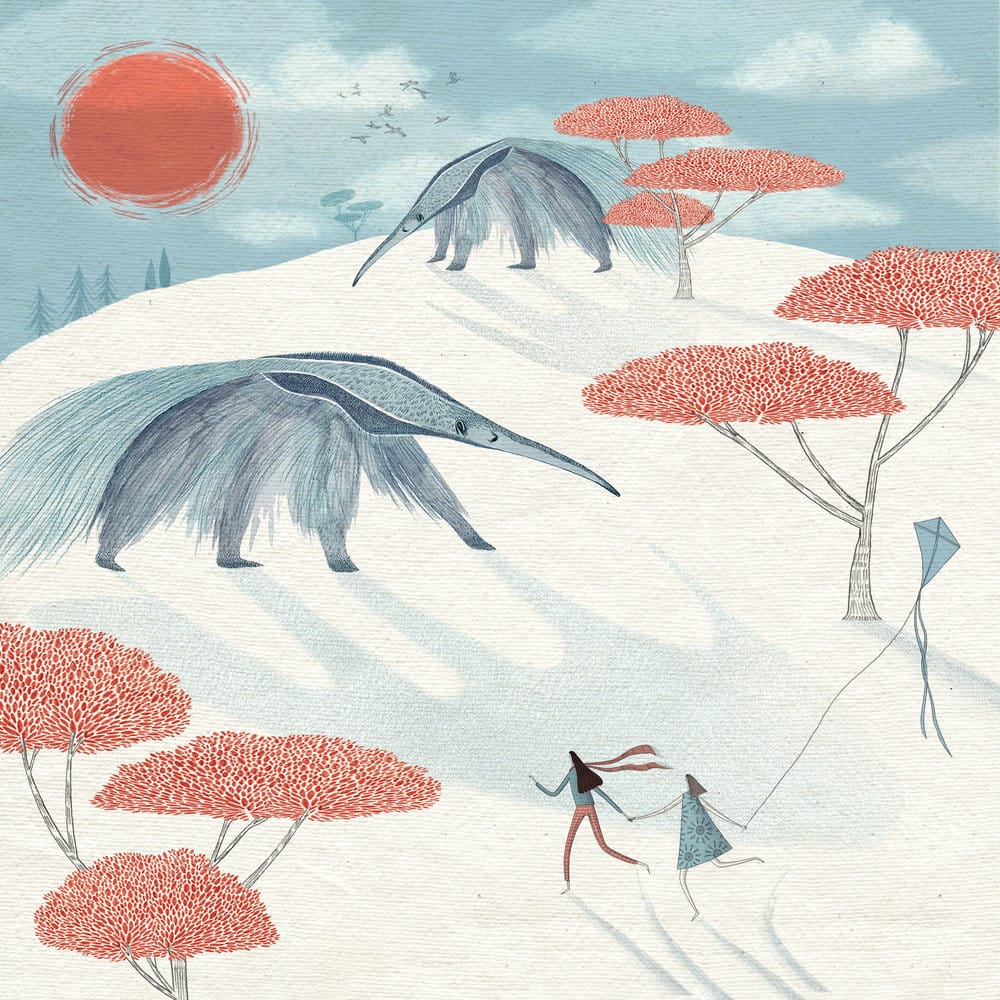 “Many of the themes running through my illustrations today have roots in my childhood; I was lucky to live in the countryside with very little technology growing up, so I think much of my work draws from that era of my life and celebrates the freedom of exploring nature, as well as the significance of connecting with our environment and nurturing the flora and fauna around us,” said Tasker. “I especially love using my illustrations as a portal to another place, whether based in reality or far from it. My personal work usually has an unwritten background beyond the image and often aims to show you a snippet of a story which you’re free to augment and continue in your head, or sometimes to invite you on a journey somewhere unknown to get happily lost, or perhaps simply to evoke a feeling or atmosphere that I felt painting it.”