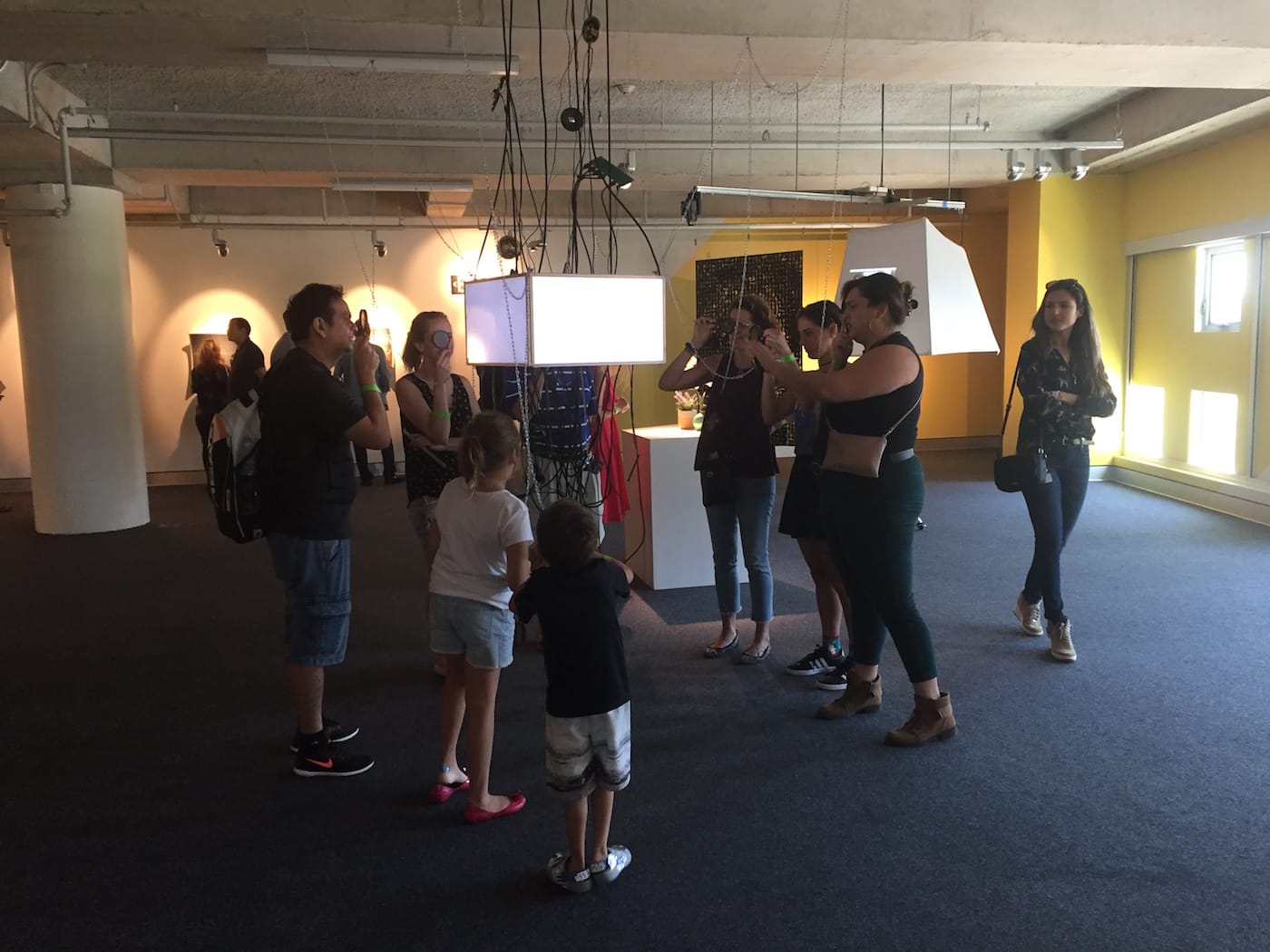 “20/X,” a piece by interdisciplinary duo McMullen_Winkler, enables you to see objects as a computer might — underneath a white fabric bell, where the image of the object is projected and self-adjusted. Toying with the toggles on the screen, I watched a bouquet of flowers shift into multicolored, pixelated simulacrums. I wished, instead, to look at a flower, soft and unencumbered, but that is not the point — I was watching a computer learn flowers, their droopy edges and round shapes. Advancing technology for the purposes of research and identification feel significant, but perhaps this research can be applied to assisting the visually impaired, too — if an eyeless mechanism can learn to detect the intricacies of something organic, surely the blind can eventually maneuver through a world that’s more accessible?