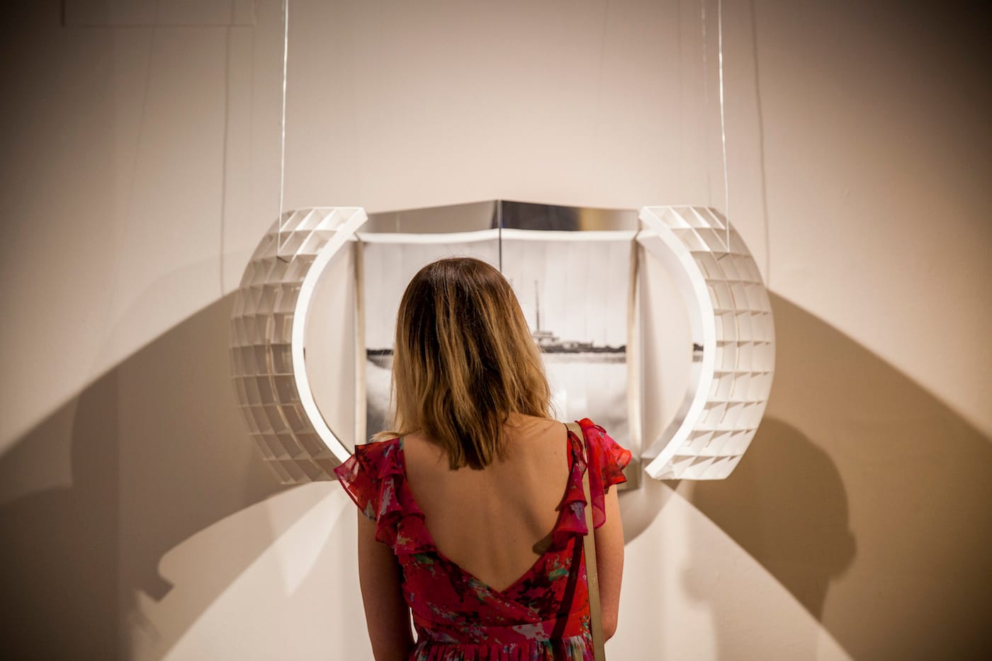 Frost Creative Director Alexandra Kuechenberg has curated a sprawling exhibit spread over two floors of the museum. Many of the works are visually pleasing in a way that might appeal to children: Kurt Laurenz Theinert’s “Magical Colour Space” is a room comprised of striped wallpaper and a light that slowly shifts its proportions of red, blue, and green, until the colored stripes seem to glimmer and disappear. The dizzying effect satisfied my gleeful inner child, and this is fine; in the most basic sense of the word, optical illusions are always stimulating, simply because they always work (hence the popularity of Magic Eye books among grade-school kids).