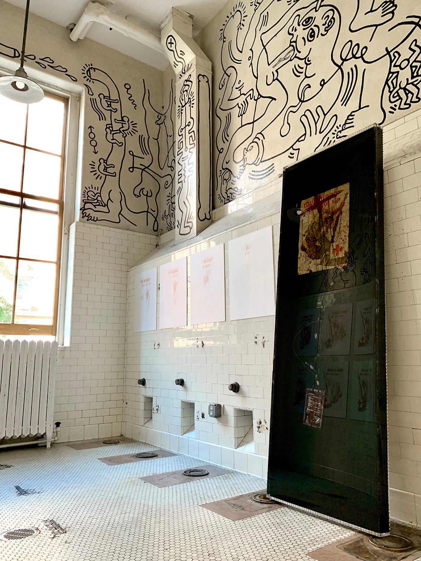 JE: One of my favorite places in New York City is the Keith Haring Bathroom. It’s such a charged space; it’s so intimate that you can imagine the artist working there on his ladder. Haring is something of a playful ghost in the room, and his mural is so celebratory and sexual. And yet, it’s important to note that Haring died not long after finishing it. He died from AIDS complications, and my project is also about ending stigma associated with the disease. That discrimination is the cause of the blood ban agains MSMs in the first place. Juxtaposing these artworks can create another intimate experience.