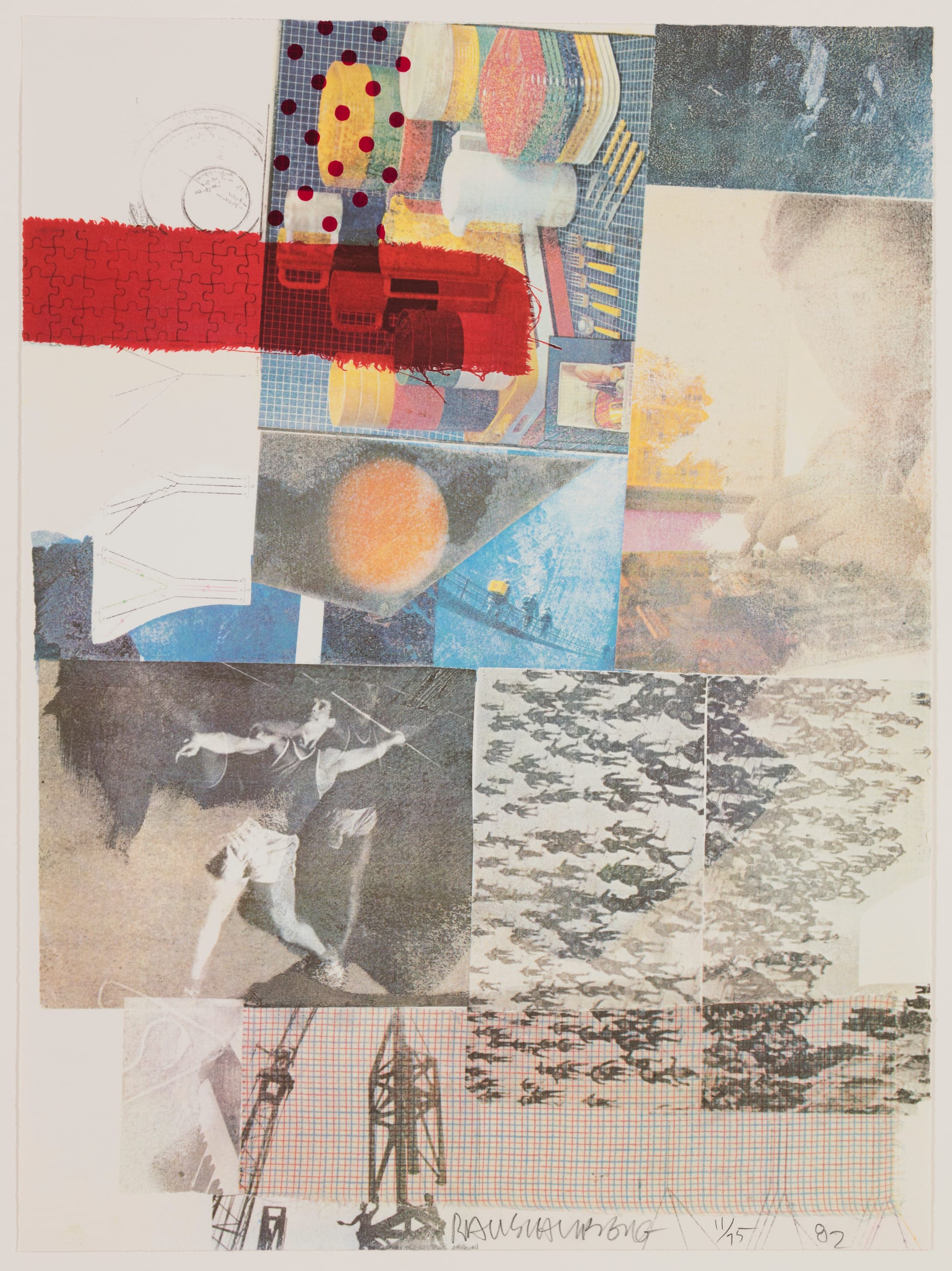 Robert Rauschenberg: Autobiography continues at the Santa Barbara Museum of Art (1130 State Street, Santa Barbara, California) through November 3. The exhibition was curated by Charles Wylie.