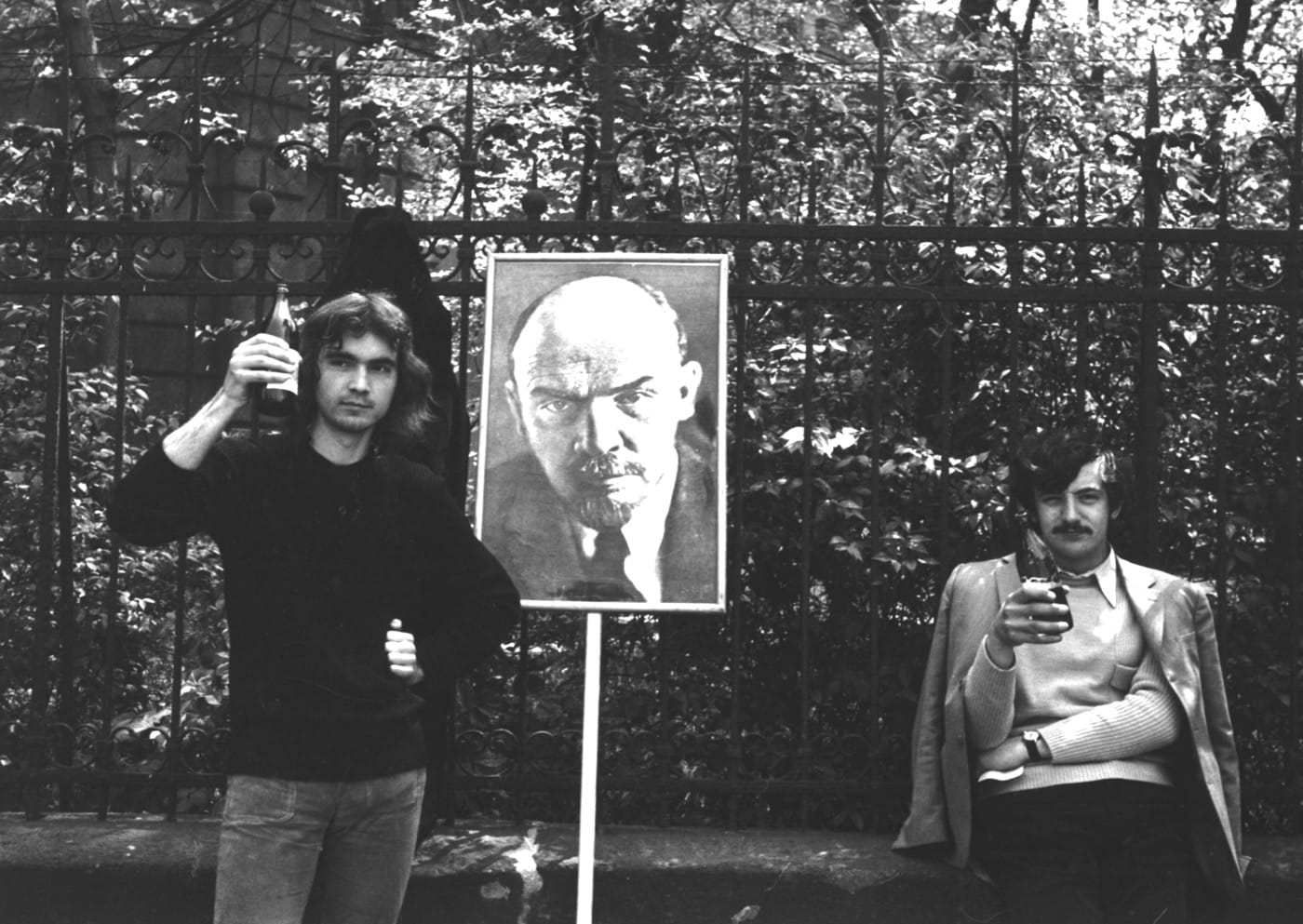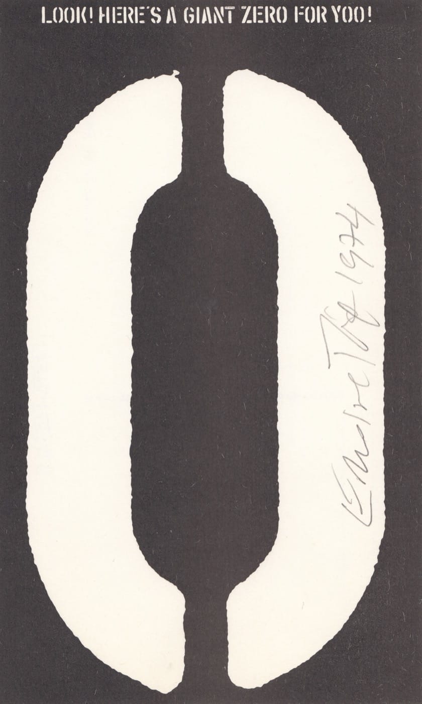 What makes the exhibited works unique is their often veiled yet inescapable politics — one way or another all of them are expressions of dissent. The non-figurative works by Keserü Ilona, Bak, Maurer or, István Nádler and János Megyik, among many others, defied the official disapproval of abstract art. The abstracted ethnographic motifs in Keserü Ilona’s and Bak’s paintings, for example, Keserü Ilona’s “Wall-Hanging with Tombstone Forms (Tapestry)” (1969) and Bak’s, “Purple-green-blue,” (1967) contested the Kádár regime’s often vulgarized cultivation of folk culture. The nude studio performances and unauthorized street actions by Ladik, Hajas, and Szentjóby challenged socialist morals and the power of the police state. The exhibition also displays the photographic documentation of Bálint Szombathy’s solitary march with a Lenin poster in hand on May Day, “Lenin in Budapest” (1972), as well as the graphic works and mail art projects of the formidable Endre Tót such as “I am glad if I can type zeros,” (1975) which demonstrate other aspects of the political — namely parody and satire. More than a typical ingredient of conceptual art, humor is a strategy of dissent and a survival tool: it can transgress social codes, blur lines and obfuscate meanings, thus making the task of censors more difficult. Tót’s postcard, “Look! Here’s a giant zero for yoo!” (1974) is a modest yet intricate joke on the viewer, a commentary about the futility of art making, as well as giving a cheerful finger to any and all higher powers.