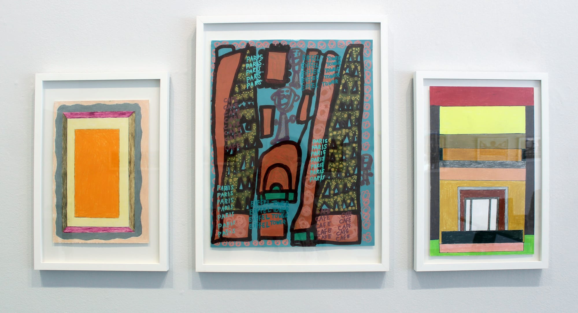 These structures could be the cookie-cutter homes lining suburbs in the Valley or the long fences defining ranch land stretched between Los Angeles and San Francisco along the Interstate 5 Freeway. The welcoming warm hues evoke the famed Painted Ladies in Hayes Valley or the iconic Victorian homes in LA’s Angelino Heights. These artists distill California’s colorful architecture, abstracted to its essence, vibrant and imperfect.