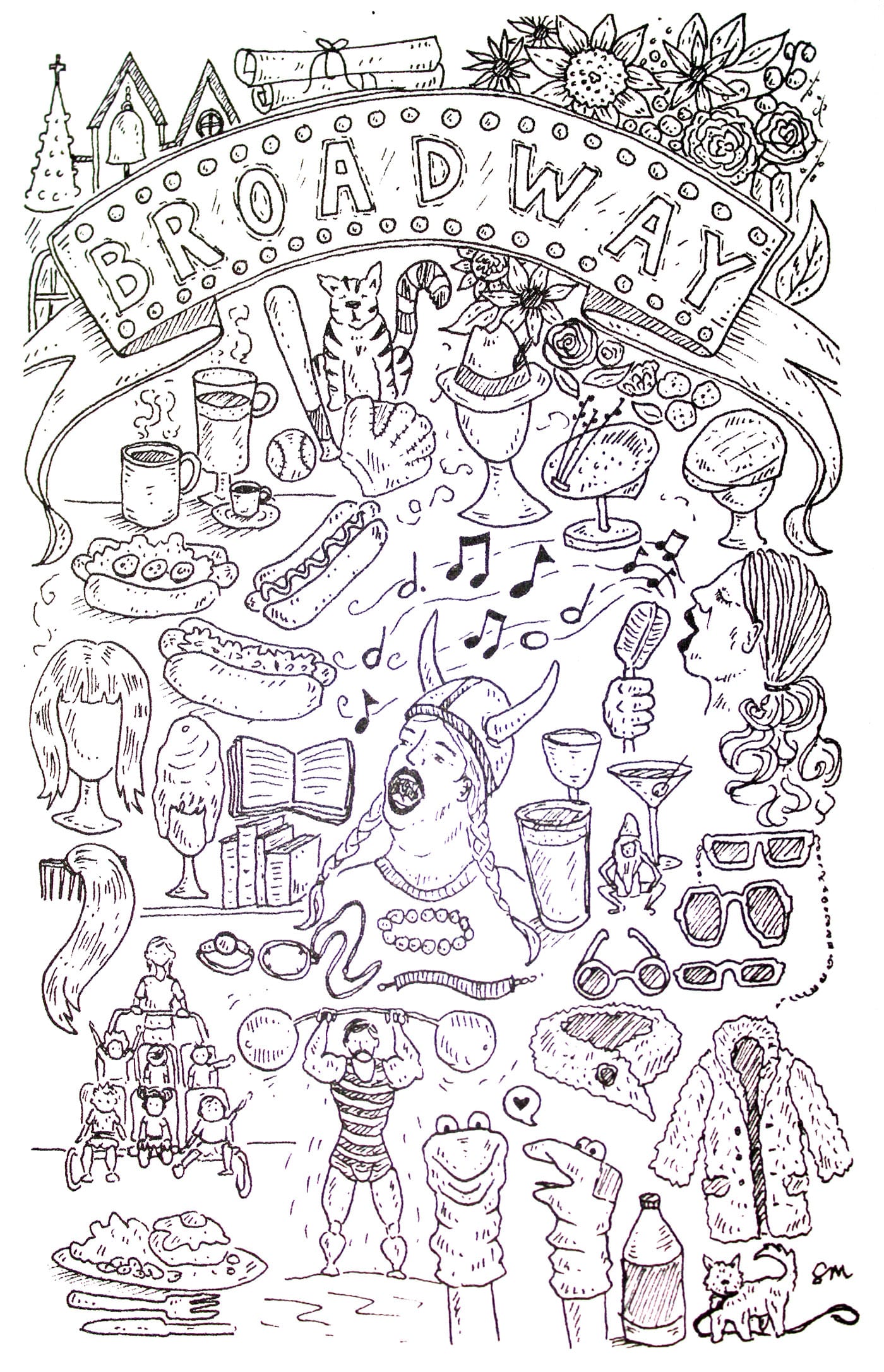 “I picked the Broadway stop as my muse,” said artist and printmaker Stacey Malasky, who created a drawn object collage that captures the many elements of the busy downtown entertainment district served by the station. “Now I have a three-year-old son who attends the YMCA for daycare, and he loves riding the People Mover! While I still think it is a pretty poor excuse for public transportation, I can’t help but see it through the eyes of my three-year-old and notice the gorgeous artwork at every station, and the way I want to throw up a little when it tips at an angle over the Detroit River, or how it announces the next stop and then, two seconds later, we are at that stop.”