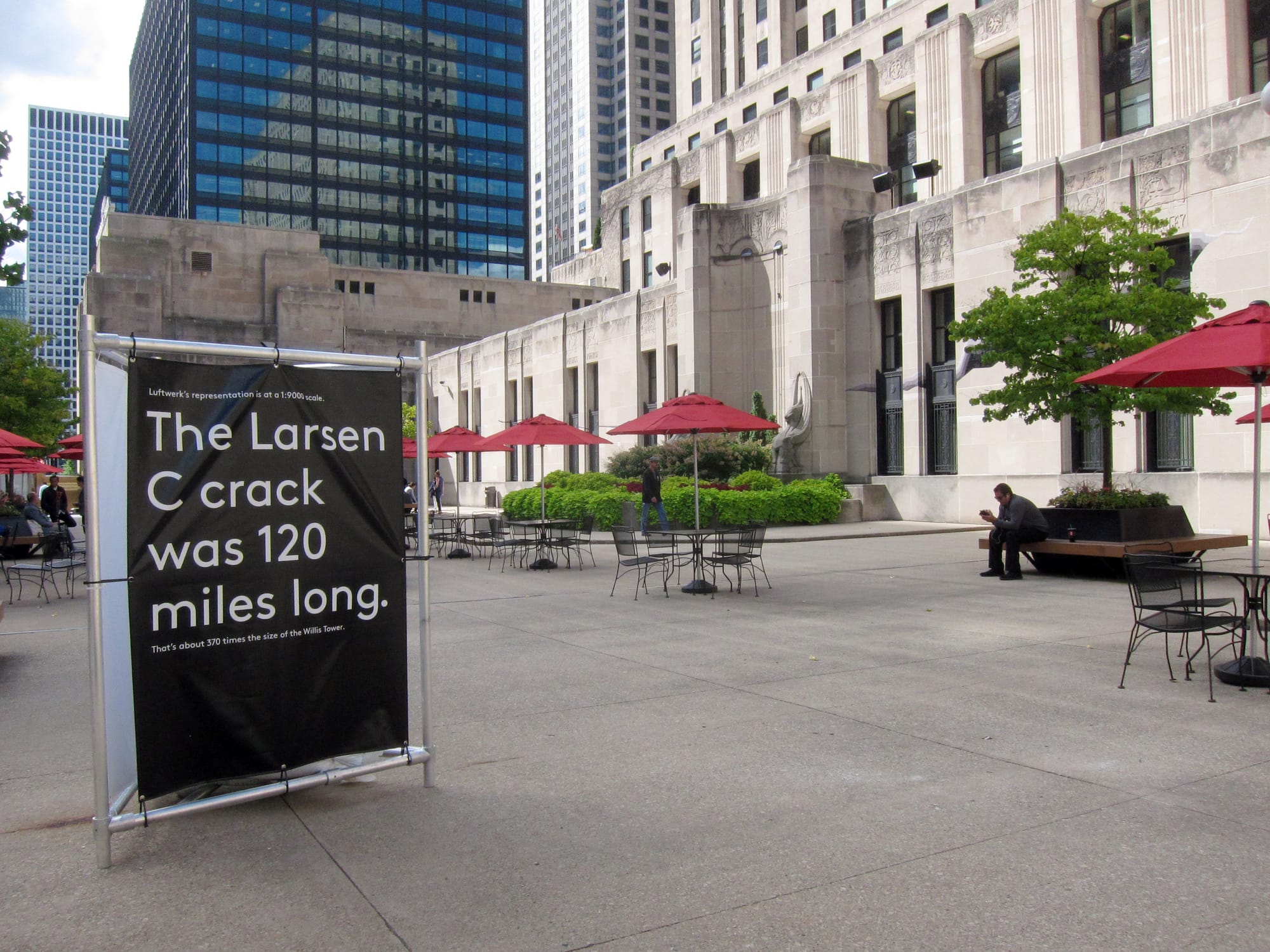 In downtown Chicago, the artist duo Luftwerk has created a public sound piece that evokes the calving of Antartica's Larsen C ice shelf.