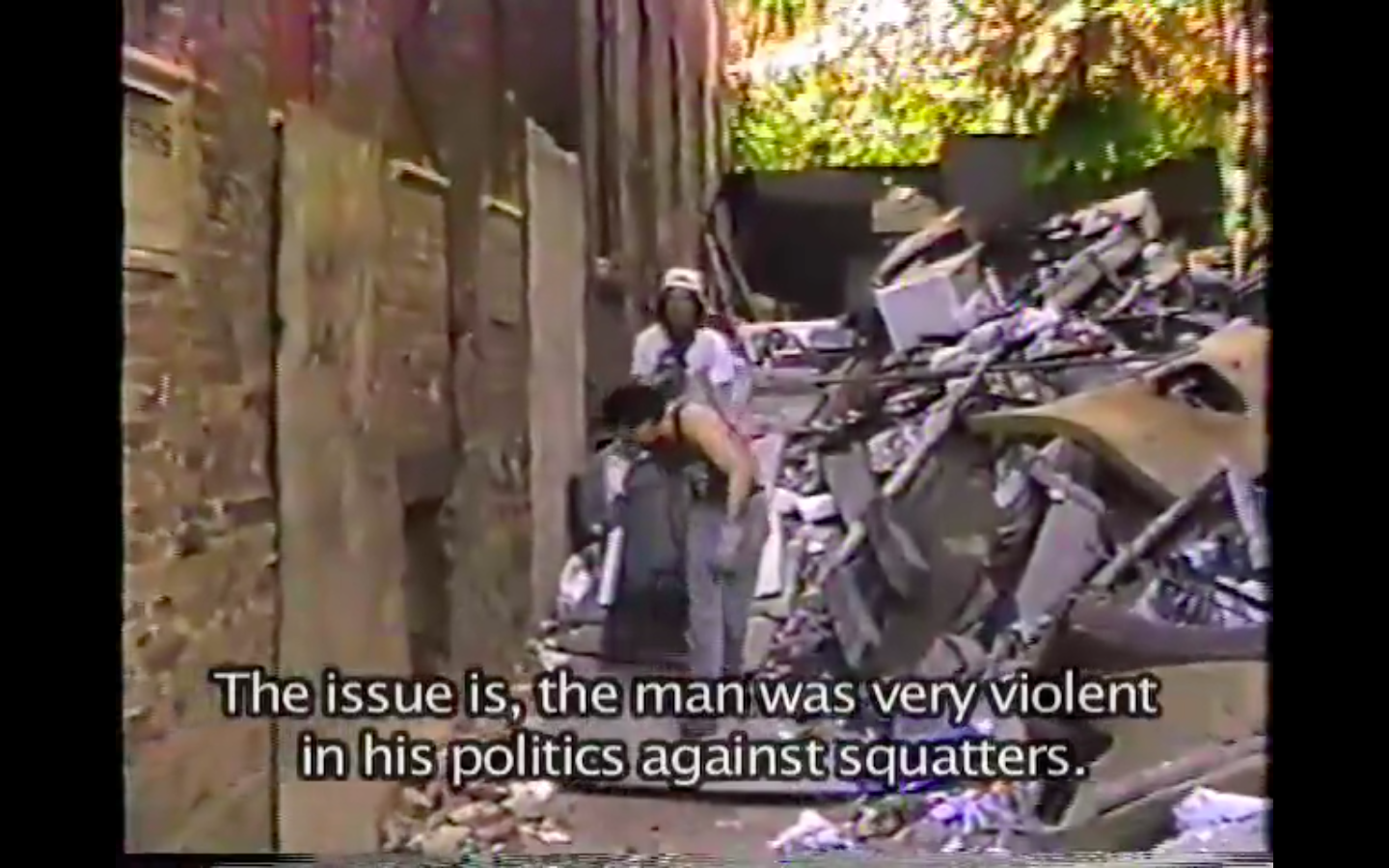 The collective fight to protect community gardens was also captured through "Battle to Save La Plaza" (1988), a documentary chronicling an anti-gentrification campaign to protect the La Plaza Cultural de Armando Perez community garden in LES from development. Other films include the 1993 documentary "Battle of Tuntenhaus," following a queer anti-fascist squat in East Berlin; "Nubia Way" (2o22), which examines London's first self-built Black housing co-op in the '90s; and The Spark (2021), about activists' plan to thwart the construction of a new airport in Nantes, France.