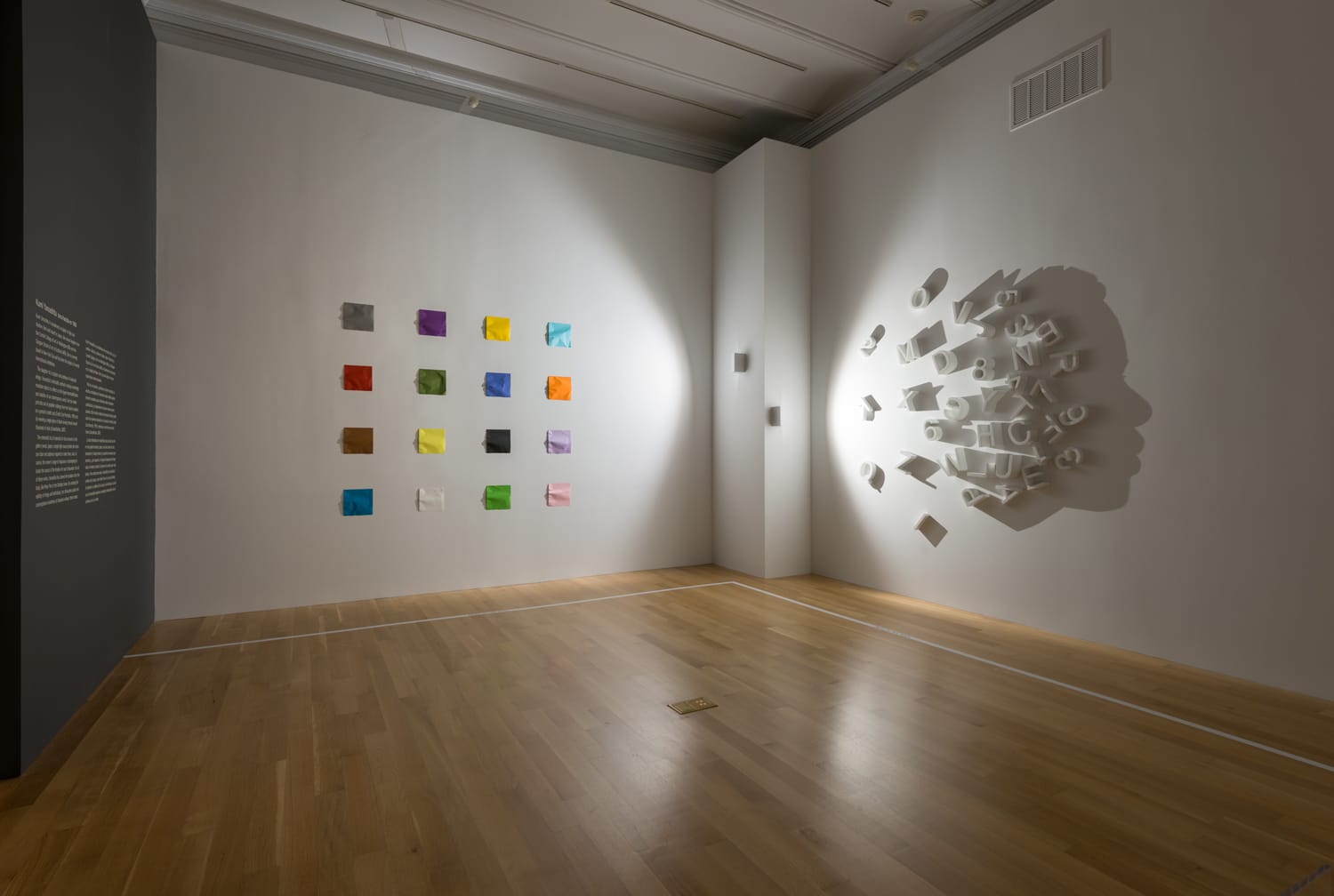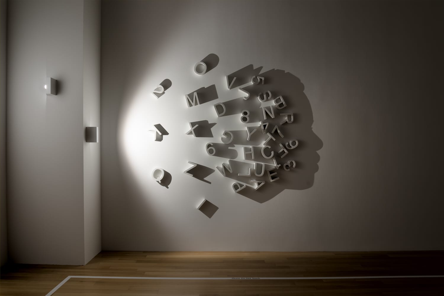 Most compelling of this group are the works by Kumi Yamashita, who creates silhouettes by casting shadows of figures on a wall using painstaking craftsmanship. Her installation “Origami” consists of carefully folded papers on which she projects bright light; illuminated from one specific angle, the crumpled sheets reveal people’s profiles. “Chair” is a wooden sculpture bended to resemble a seat — but backlit to reveal that its surface is carved in a way to cast a shadow of a seated girl. In Yamashita’s work, the shadows seem like traces of living beings; this humanizing aspect is a reminder of the silhouettes’ important role through history of helping people represent and express themselves, as faceless and enigmatic old portraits may seem today.