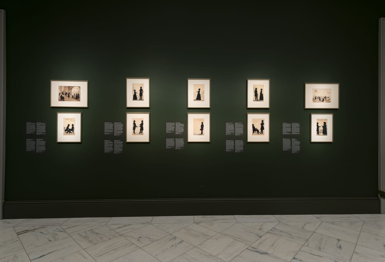 How silhouette portraits, although visually simple, have recorded stories that would otherwise likely be forgotten — or never documented — is one key concern of Black Out: Silhouettes Then and Now, an exhibition at the Smithsonian’s National Portrait Gallery. Curated by Asma Naeem, the Portrait Gallery’s curator of prints, drawings, and media arts, the exhibition features about 50 objects that date from 1796 to today, emphasizing the narrative possibilities of this deceptively elementary medium. It is the first major museum show to examines these delicate, pitch-black pictures as a significant art form.