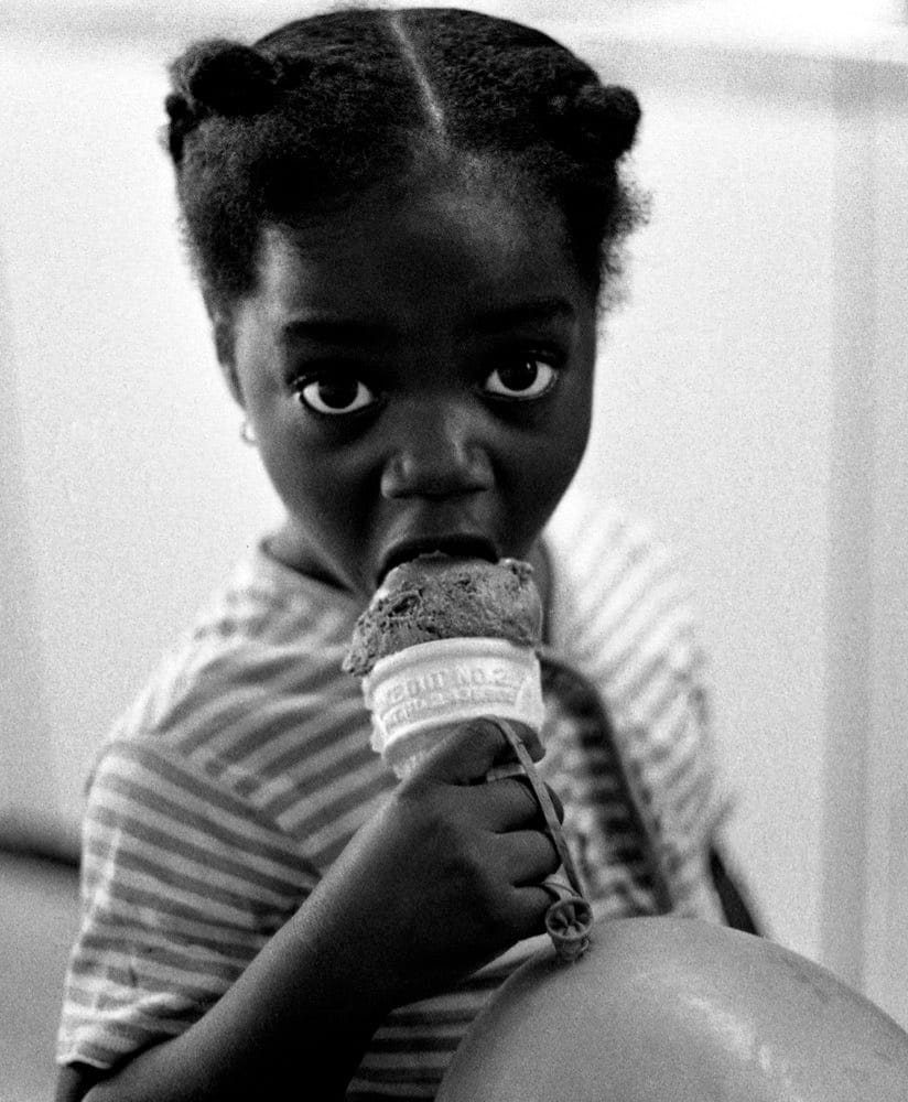 Since his jumpstart in the ’60s, Simmons’s archive of images grew more and more as he traveled across the globe. As his career progressed, he traveled across the United States and around the world to document aesthetics of the Black diaspora, visually tying them together through black and white photography. He photographed boys in Trinidad and Tobago, Black Panthers in Tennessee, and nannies in Chicago, but their stories laced into one another through his intimate style of image-making. He went on to photograph candid moments of iconic figures in Civil Rights and Black liberation movements, like Rosa Parks, Amiri Baraka, Nina Simone, and Angela Davis.