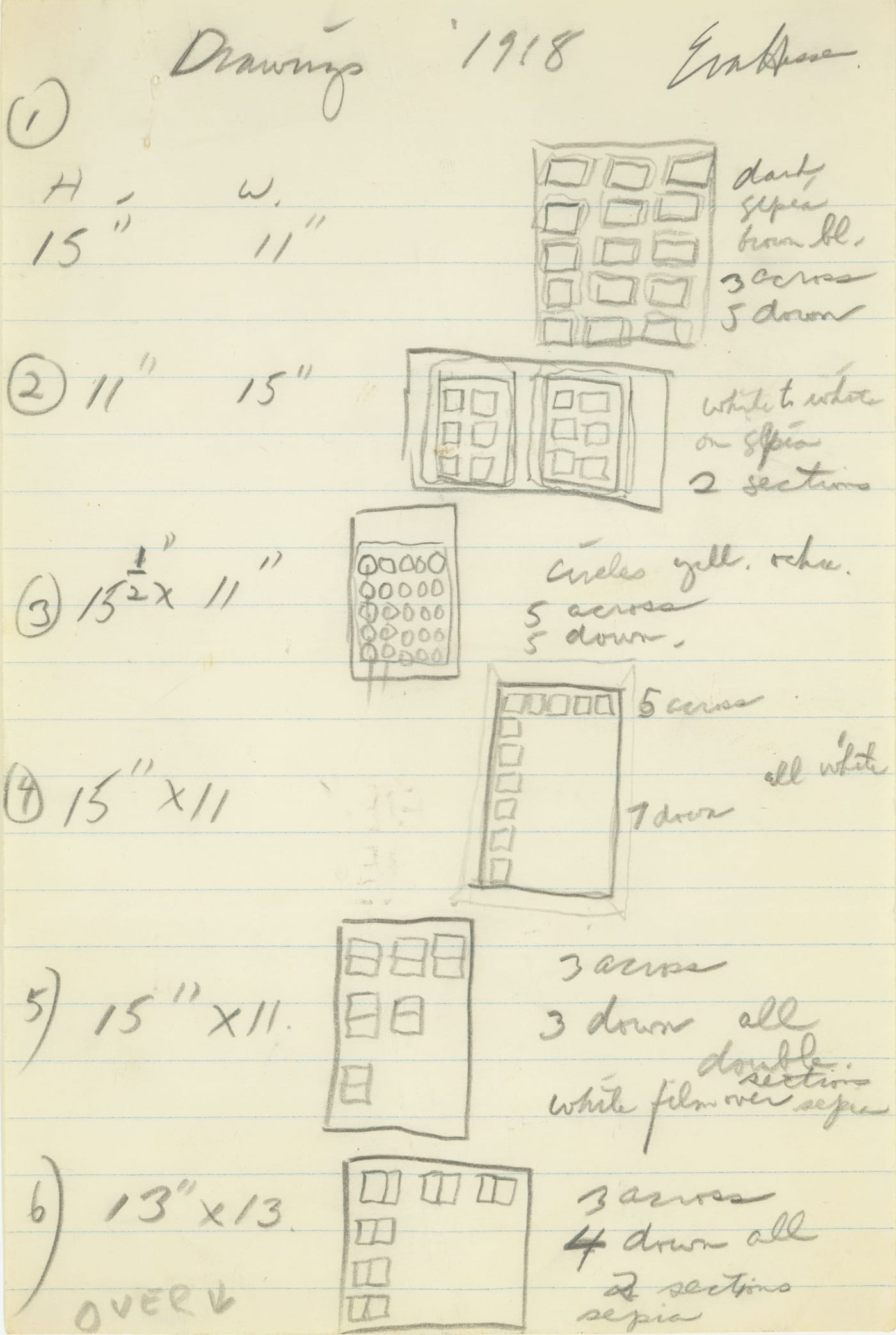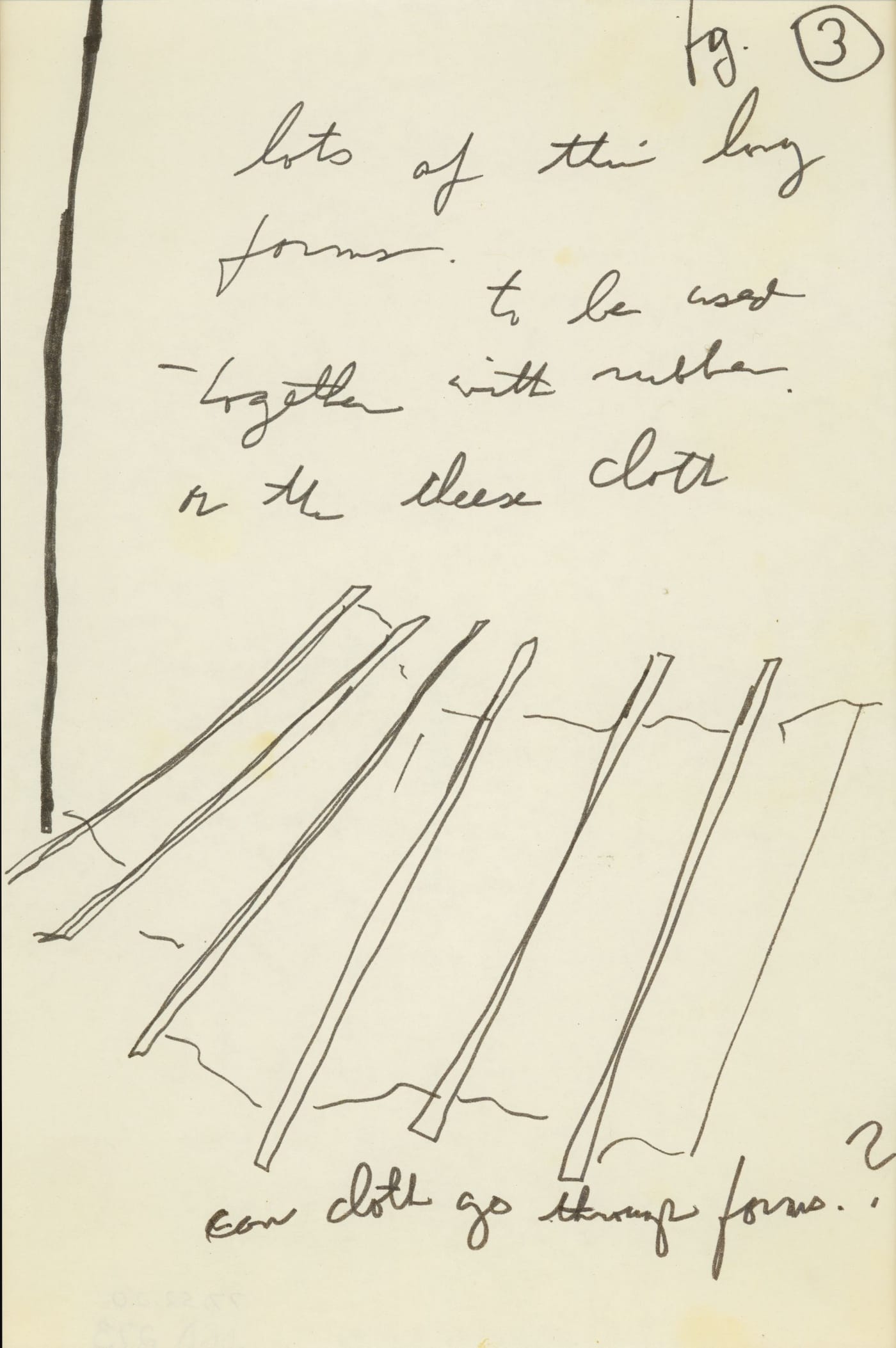 The thingness that Hesse applied to her titling process ripples throughout her drawings, most patently in the working sketches she made between 1967 and 1970. These are all annotated and numbered, and while some are recognizable from the sculptures they anticipated, others are not. (It would have been useful if the gallery had found an unobtrusive way, perhaps via an app, to connect the drawings with their related objects.) But despite their practical intent, they are never technical or schematic, but roam the page along the liquid passages of thought.