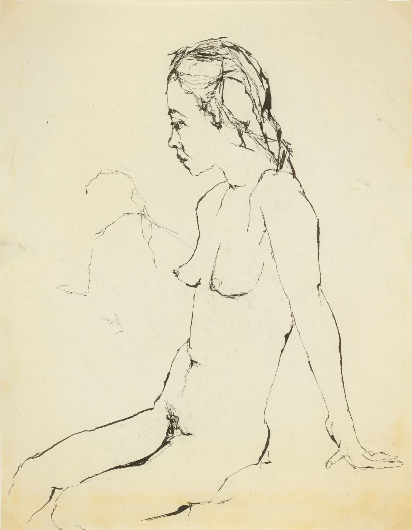The artists were born nine years apart — Chamberlain in 1927, in Rochester, Indiana, and Hesse in 1936, in Hamburg, Germany. Chamberlain was a World War II veteran who served in the US Navy from 1943 to 1946, and Hesse, at the age of two, escaped Nazi Germany with her sister Helen (who donated the drawings in this show, along with many other works and documents, to the Allen Memorial Art Museum at Oberlin College), sent by their parents to the Netherlands on a Kindertransport train; the family was reunited in New York in 1939.