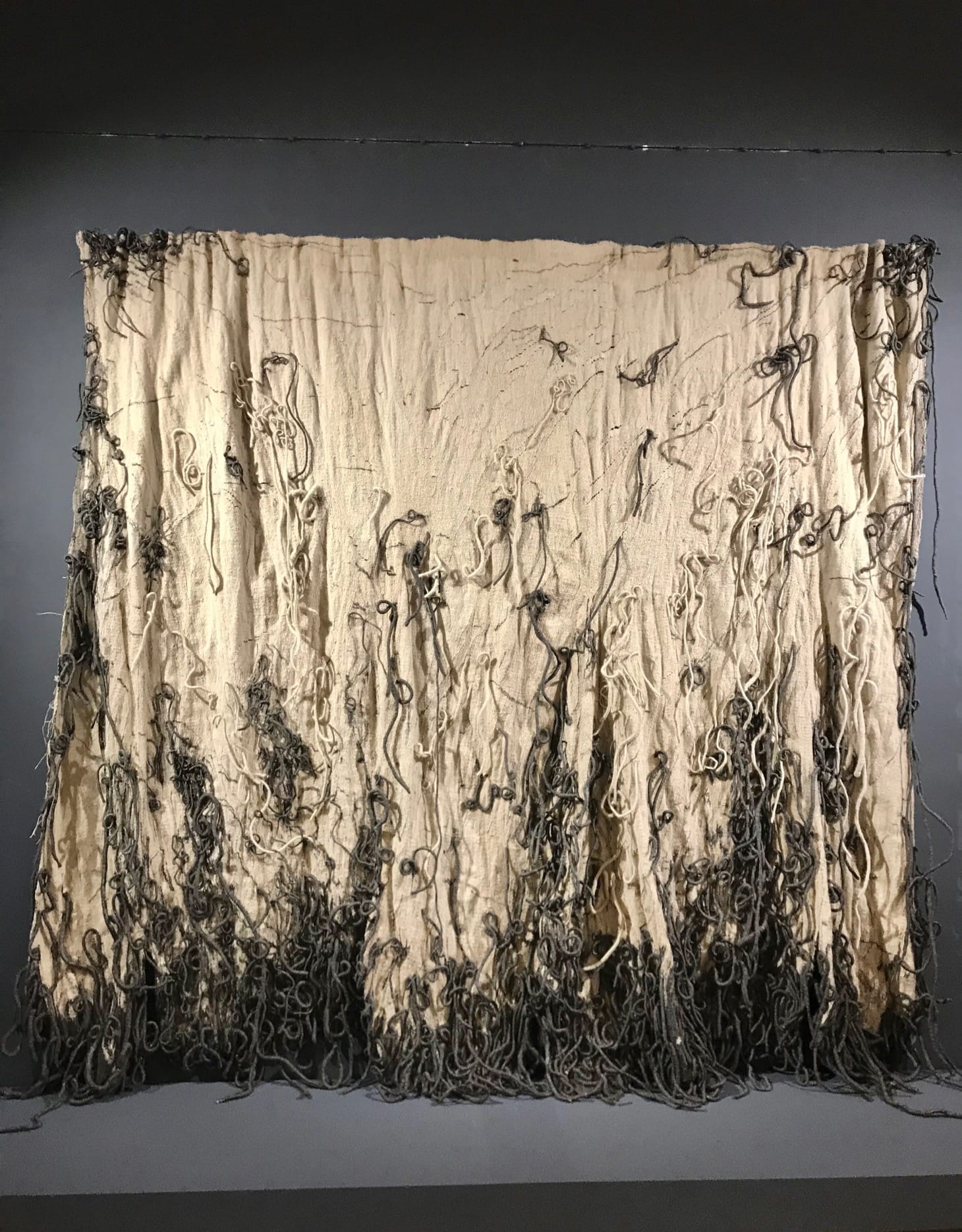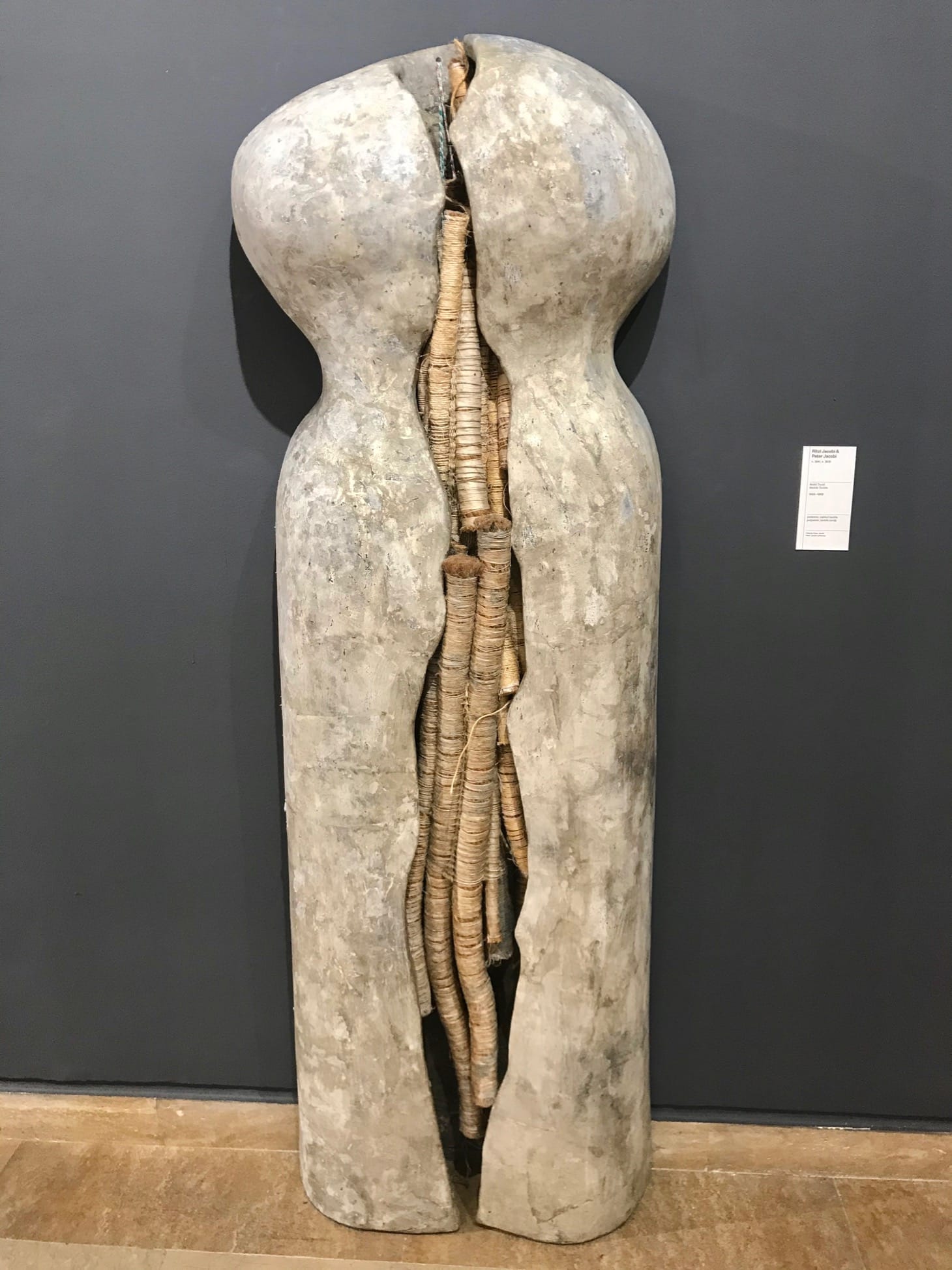 For each artist’s section, the curators selected a text from the exhibited artist, which illuminates a feature of his or her practice. For Ritzi and Peter Jacobi, the text is an excerpt from an interview in Arta magazine in which the artists discuss their use of traditional methods and unusual material combinations, noting that the works they create “don’t have a foreign feeling, they possess a local spirit.” In “Ileanda” (1974), strings of goat hair and wool hang from a rough sisal textile, evoking the works of fiber artist Claire Zeisler but clearly drawn from the rugged, rural commune after which the piece was named. Uniting disparate works such as Pavel Ilie’s “Road of Lige” (1970) and Ovidiu Maitec’s “Flight” (1968–1969) is the artists’ underlying interest in engaging with an international discourse, while maintaining a sense of place.