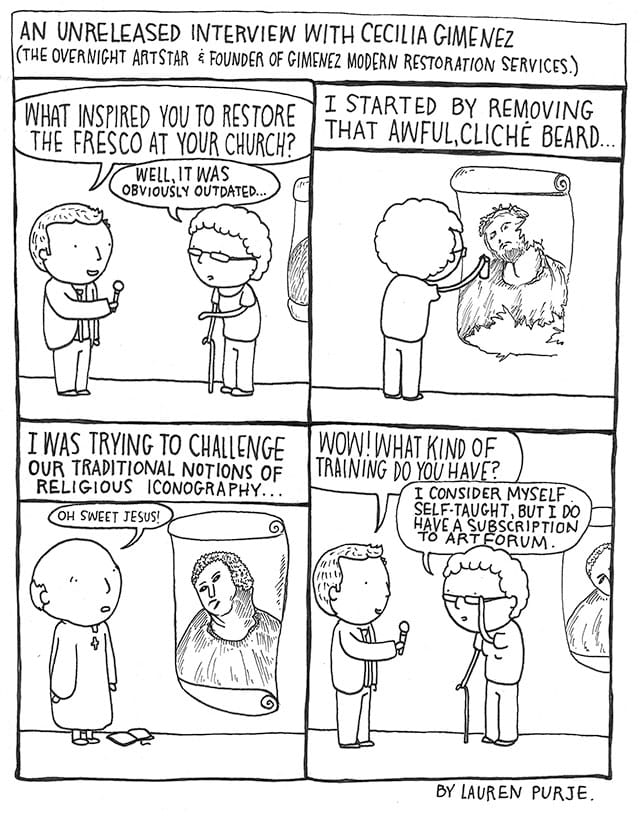 The overnight artstar and founder of Gimenez Modern Restoration Services may have known what she was doing all along … hmmmmm …