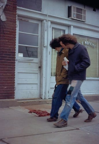 The photo snapshots and documentation of “People Looking at Blood” are striking in a way that a gallery recreation could never be. The original context, the street in the 1970s, is lost, so why bother attempting to recreate a performance with the same stage presence in gallery space resolutely devoid of emotional meaning? The magic exists in the real objects, the real documentation in a way that it doesn’t at all in the re-staged performances of Abramović’s MoMA retrospective. Yes, Abramović’s actors are performing an intensive, rigorous act by having their hair tied together or perching on a crucifix-evoking bicycle seat, but in the end these stagings largely came off with an air of carnival sideshow, a quality induced by the re-stagings’ own spectacle: we are allowed to re-consume these historical performances as titillating “shows” rather than harrowing works of art. It’s all about the context, or lack thereof.