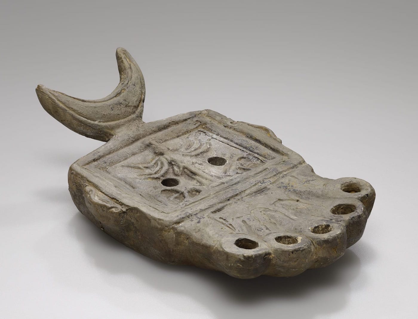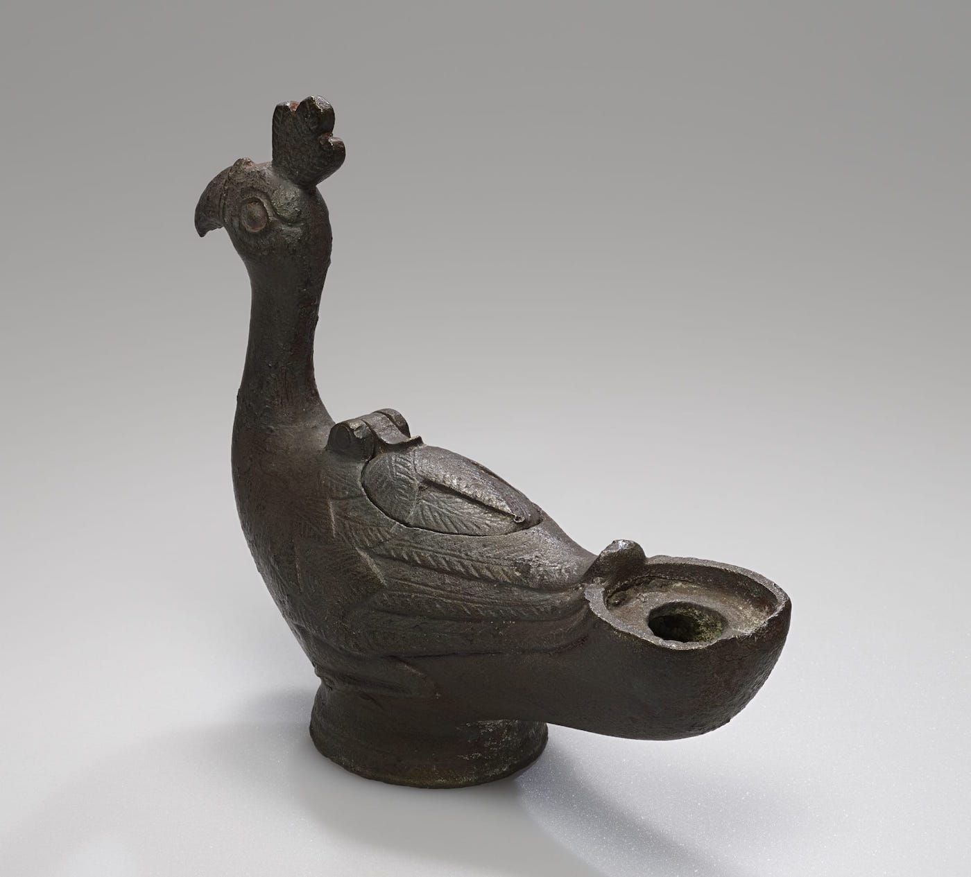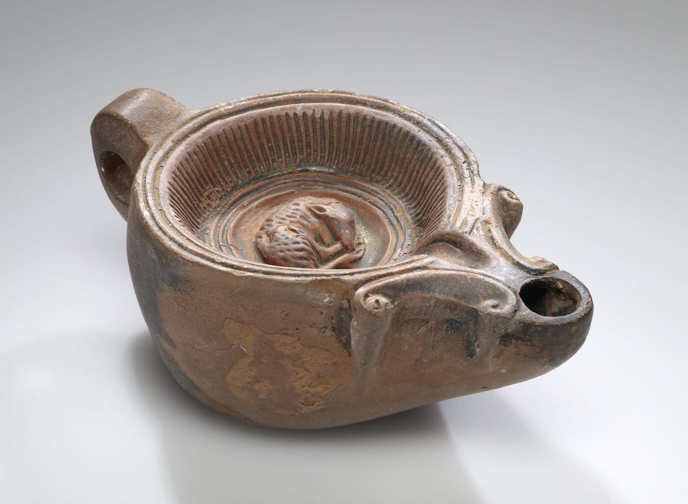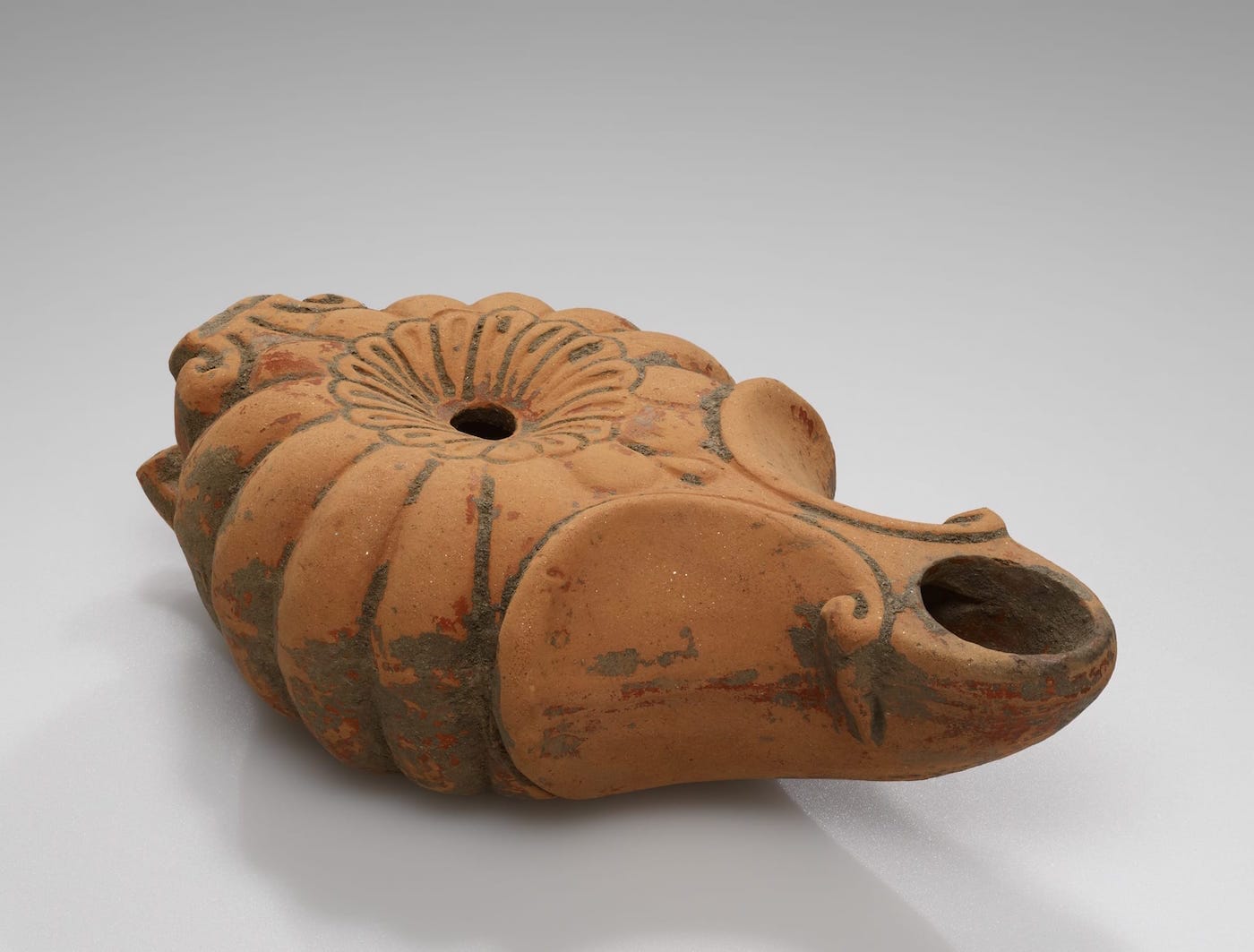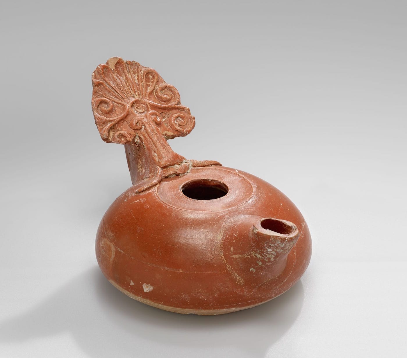 The oil lamp, at its core, is quite a modest object. Roughly the size of your hand and made of clay or metal, it really needs to hold only fuel and a wick to fulfill its duty. But while the basic engineering of oil lamps remained the same for thousands of years, the forms of their vessels were ripe for artistic experimentation. Oil lamps became highly decorated wares, featuring designs that play with the shapes of their handles, nozzles, and bowls.
