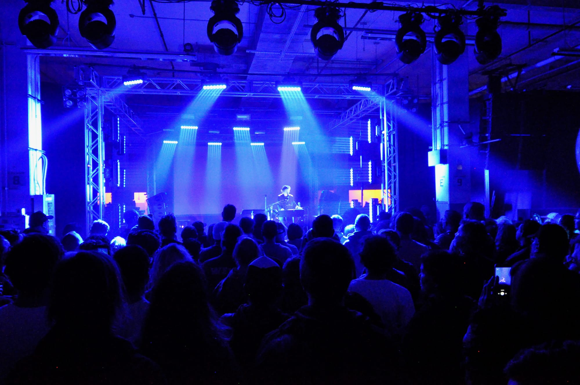 On the opposite side of the venue, you could hear Ryoichi Kurokawa’s “Octfalls” from several yards away, a giant rush of water getting louder and louder before stopping abruptly. Originally created for the 2011 Venice Biennale, the installation consisted of eight oblong hanging screens, each projecting the close-up sight and sound of a somewhat distorted waterfall. As festival-goers gathered in the central space between the circle of waterfalls, the images and sounds appeared and disappeared from various screens with a whoosh, culminating in an almost deafening static-like noise and a blinding light when the screens all turned on at the same time, before cutting off and slowly starting over again. With people gathered in the center of the waterfalls, it felt like a kind of ritual, everyone turning their heads to face the same screens as they erratically turned on and off.