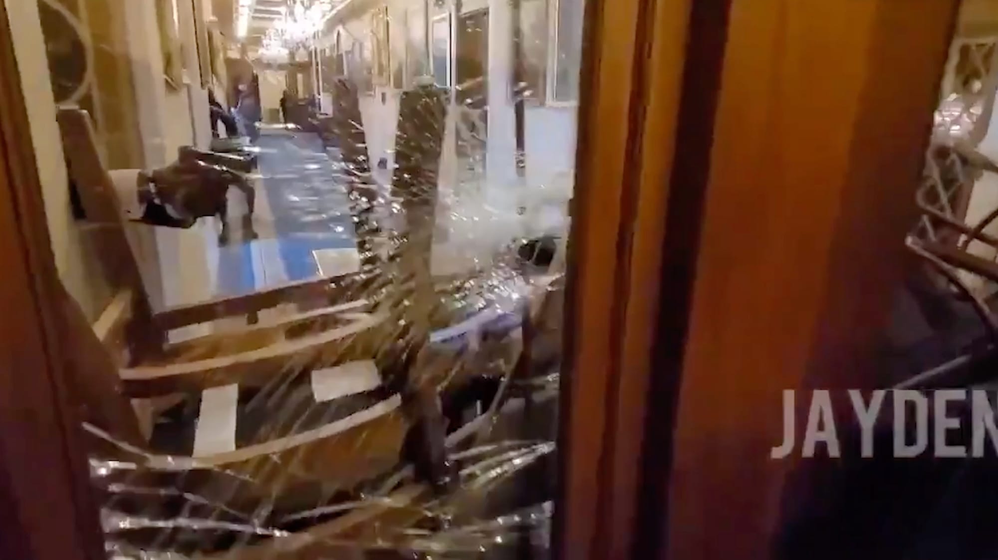 What follows is the bulk of Insurrection: footage exclusively gleaned from the Capitol grounds on January 6. Serrano assembles the scenes roughly chronologically, tracking the storming of the barriers to the bloody hallway battles to the scenes of insurrectionists idly wandering the Capitol building. Many viewers will be intimately familiar with specific images from news footage and congressional hearings, such as the moment when Metropolitan Police Department officer Daniel Hodges was crushed by the press of bodies against a revolving door frame.