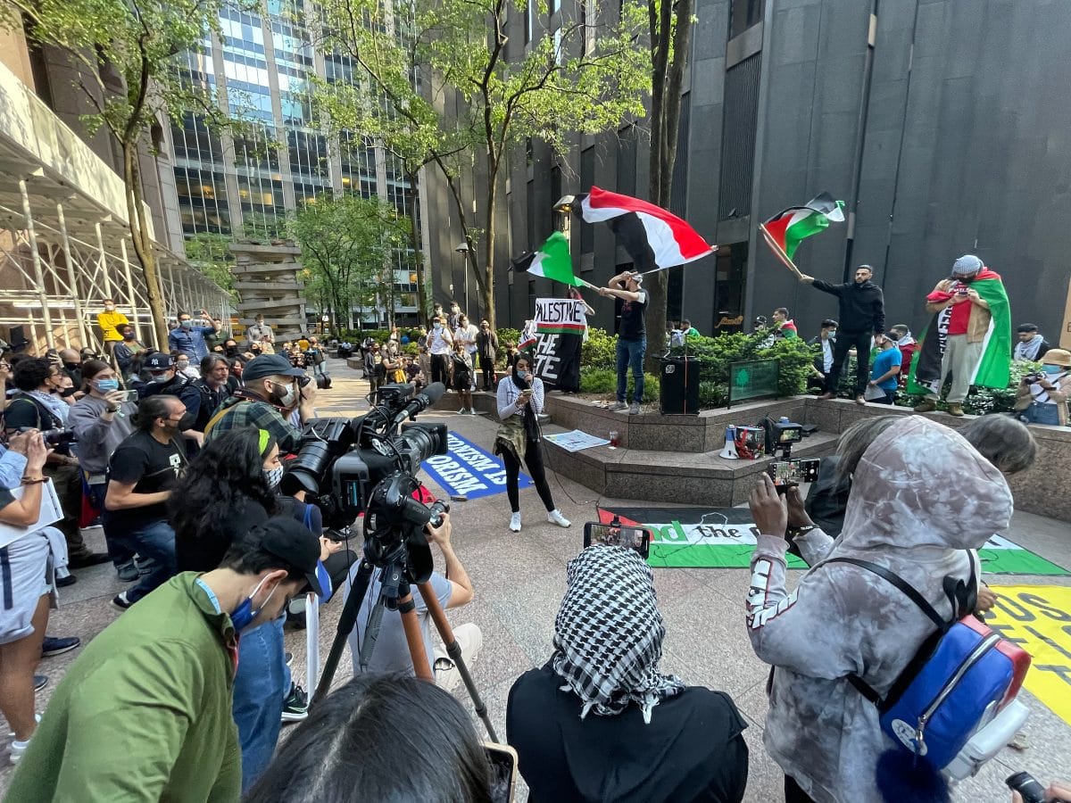 A series of weekly protests across from the Manhattan museum has continued this trend, with a coalition of activist groups called the International Imagination of Anti-National Anti-Imperialist Feelings (IIAAF) seeking to promote a "post-MoMA future" that prioritizes the needs of communities over the undue influence of billionaire museum donors. Last Friday, more than 300 people participated in the sixth weekly event for its biggest gathering thus far. The action, which centered Palestinian lives, culminated in the arrest of one protester. A video of the incident shows five police officers tackling the protester to the ground before detaining him, and an eyewitness told Hyperallergic that the protester was also beaten up by the officers.