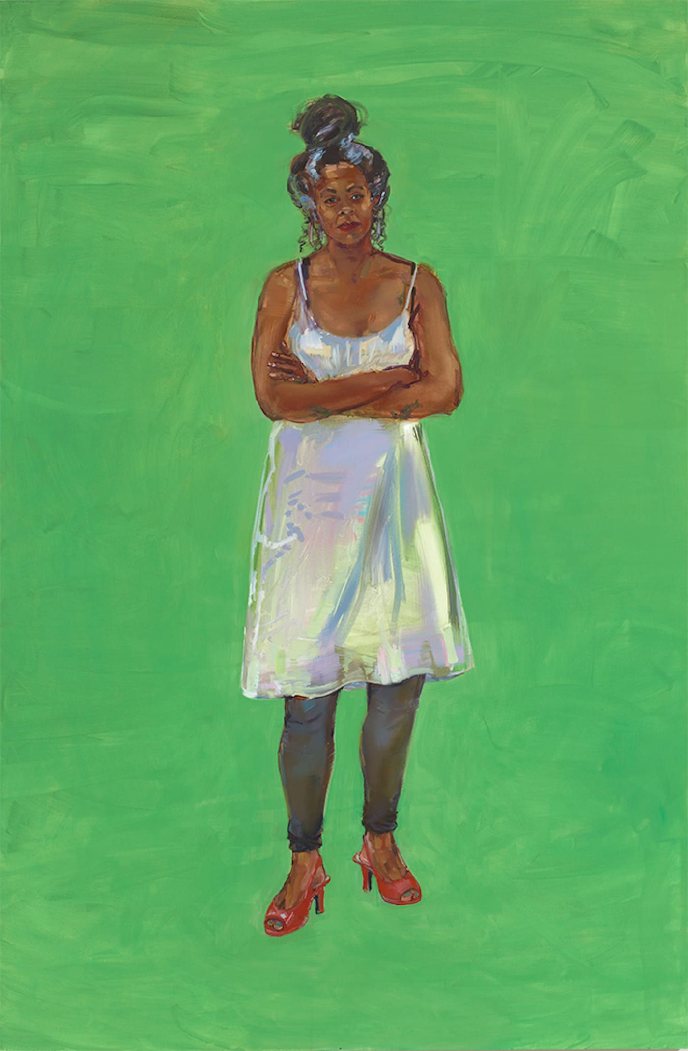 These intimate, large-scale oil-on-canvas portraits depict Dufresne’s loved ones, including her partner and her community of mostly queer artist friends. While she references the Western art canon, with nods to Velazquez, Goya, and Gainsborough, Dufresne shakes up portraiture tradition and upends the conventional artist-subject power dynamic by working in collaboration with her subjects. She asks her sitters to provide prompts, dictate their backdrop, and determine when the work is finished. She regards painting as a co-creative process.