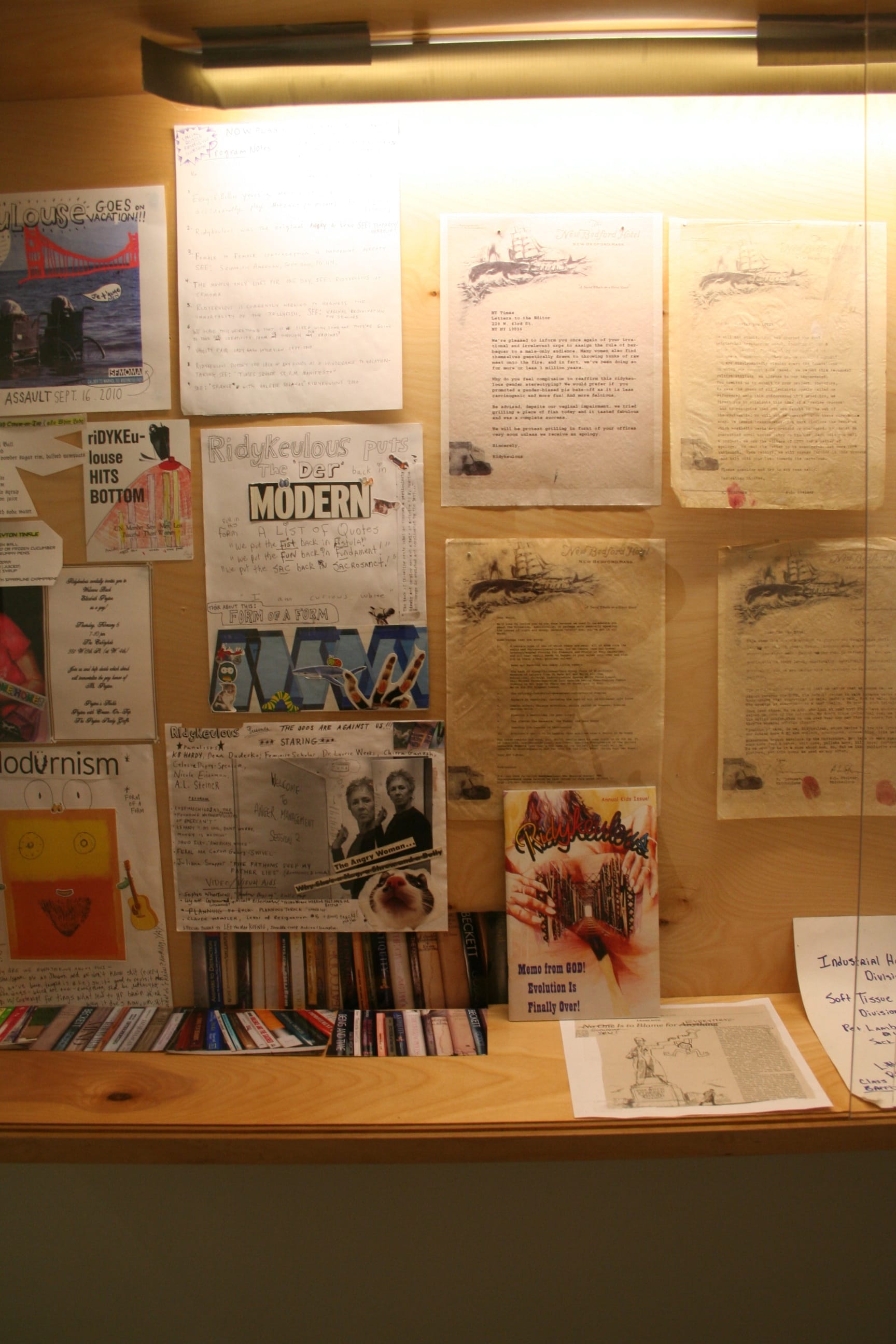 Ridykeulous, founded by artists Nicole Eisenman and A.L. Steiner in 2005, describes itself as an effort to “subvert, sabotage, and overturn the language commonly used to define feminist and lesbian art,” primarily through exhibitions, performances, and zines. Attacking the marginalization of queer a
