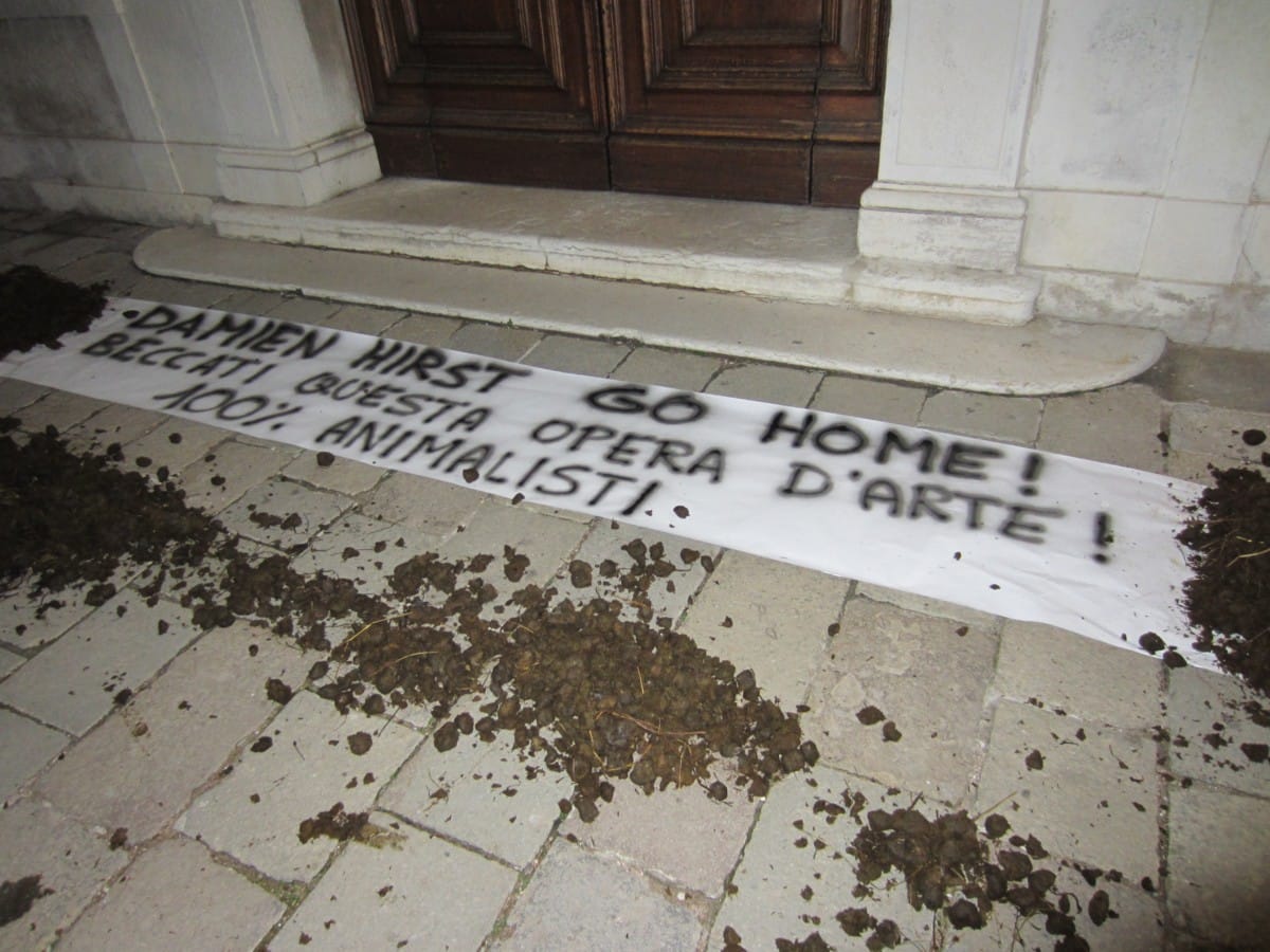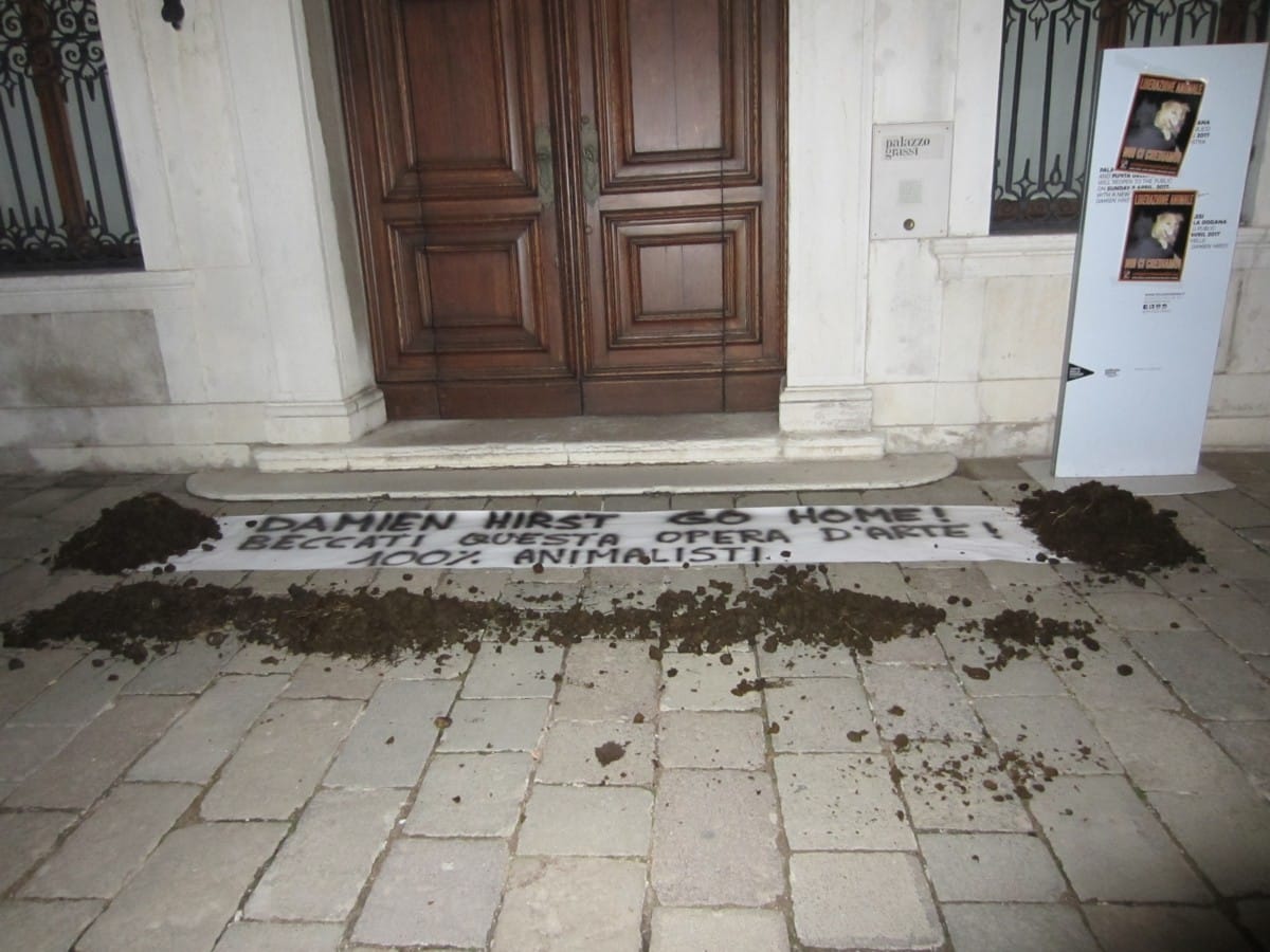 Activists heaped animal turds at the door of the Palazzo Grassi, which will open an exhibition of new works by Hirst.