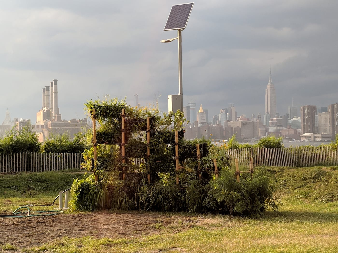 “The original idea was to have this in the densest urban areas possible so that it would really fill in a gap, especially since birds tend to fly over the Atlantic Flyway, see Central Park, land there, and then have to move north or south from that point,” Gerchick told Hyperallergic. “It’s been shown that they really do need places to rest and get more sustenance, so the idea was to provide some pockets — even if they’re small — to make a corridor. We ended up having the opportunity to build it on Governors Island, which is a very different place, but a perfect place to launch it.”