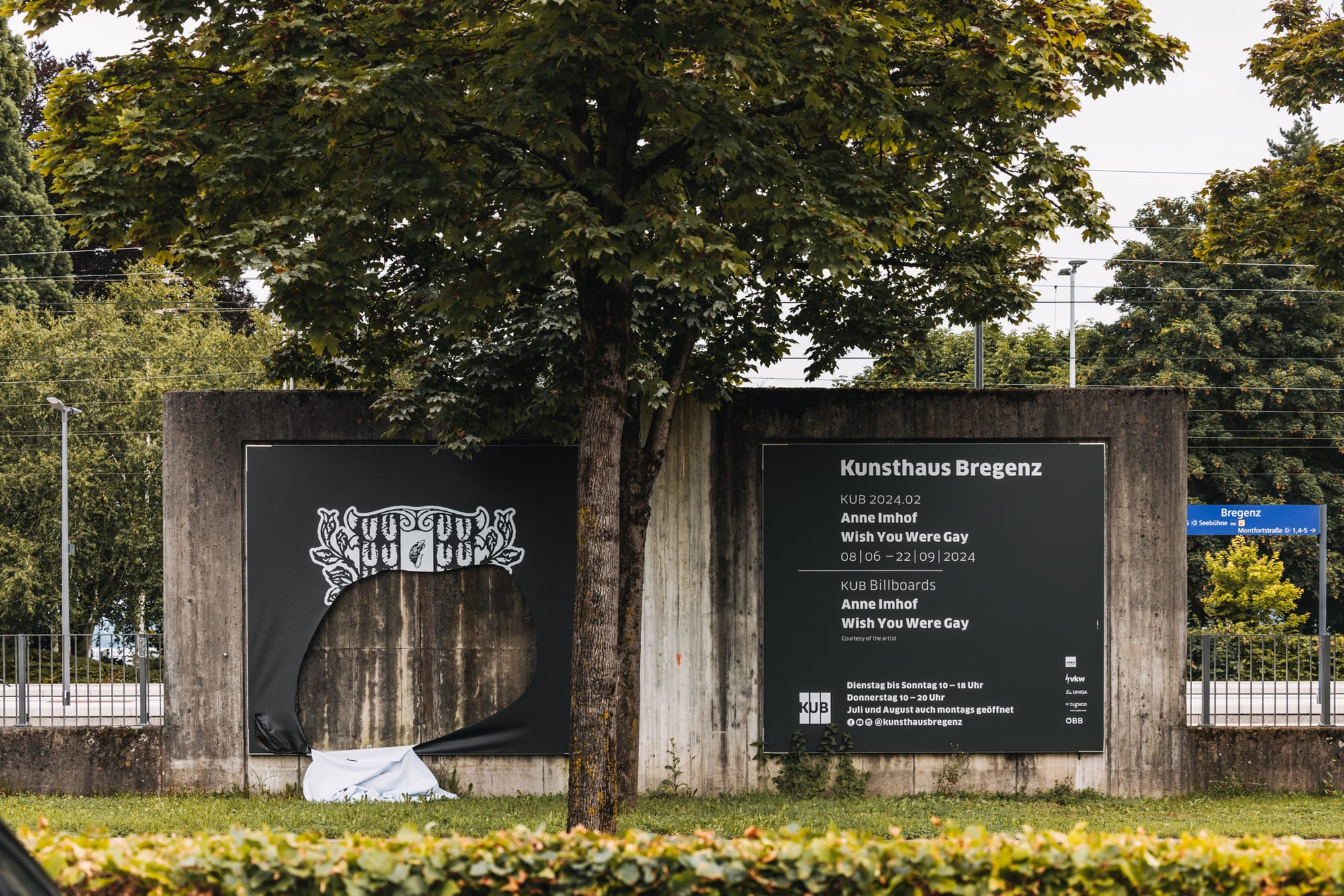 German artist Anne Imhof's six "Wish You Were Gay" banners promoting her solo exhibition of the same title at the Kunsthaus Bregenz (KUB) in Austria were slashed outside the museum on Tuesday night, July 23, in an incident Imhof described as an "act of violent aggression."