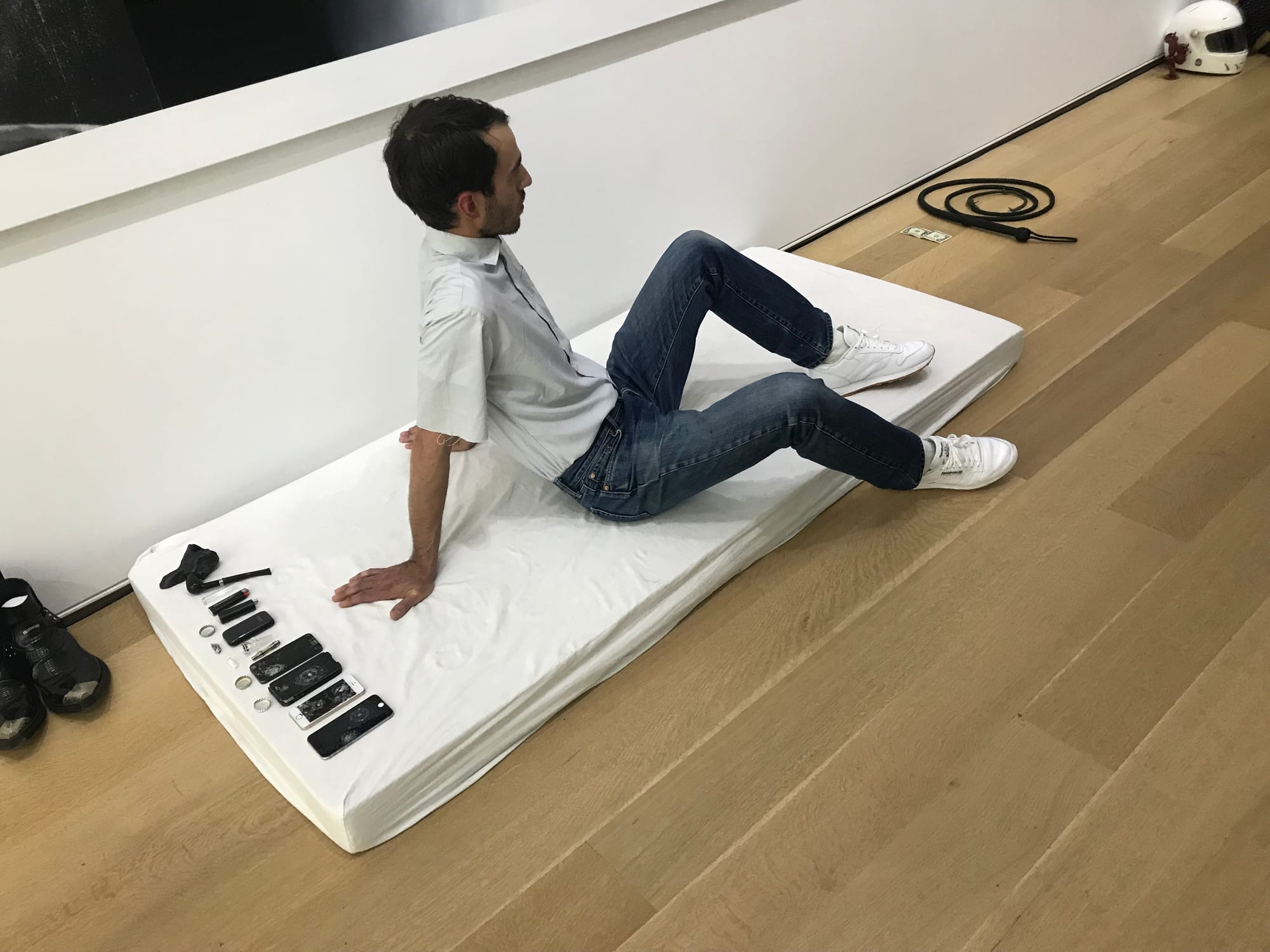 Sex, then, powerfully reflects its times. The political claims the work makes — namely, to broaden contemporary understandings of “sex” and incorporate a range of gender nonconforming, non-binary, and anti-normative subjectivities — are a little overblown. In particular, it is striking that the bodies of all of Imhof’s performers are beautiful in a normative sense. You could see them all on a fashion runway, whatever their sex or identity. Can the project of revolutionizing gender and sex really succeed without also exploding received notions of what constitutes physical beauty? If not — and the answer is surely no — Sex does not so much undermine or deform as confirm older notions of sex. A part of me identifies with the pretty, affectless performers on view, while another, warring element of my consciousness wants to push against this desire, to be something different. If I am transfixed by Imhof’s performance, it is the morbid transfixion of being faced in the mirror with visions of the body, of sociality and of subjectivity that are at once desirable and disconcerting. Yet I do want to rest — like a dying star in the orbit of a black hole — in the flicker of Sex’s burnout.