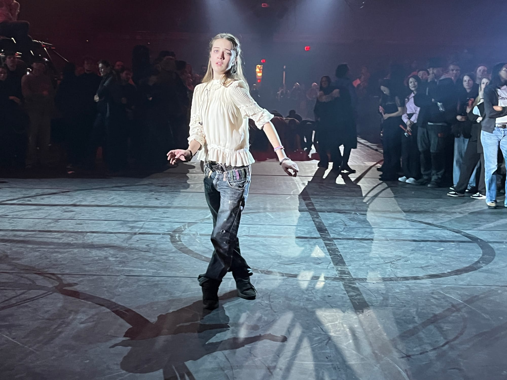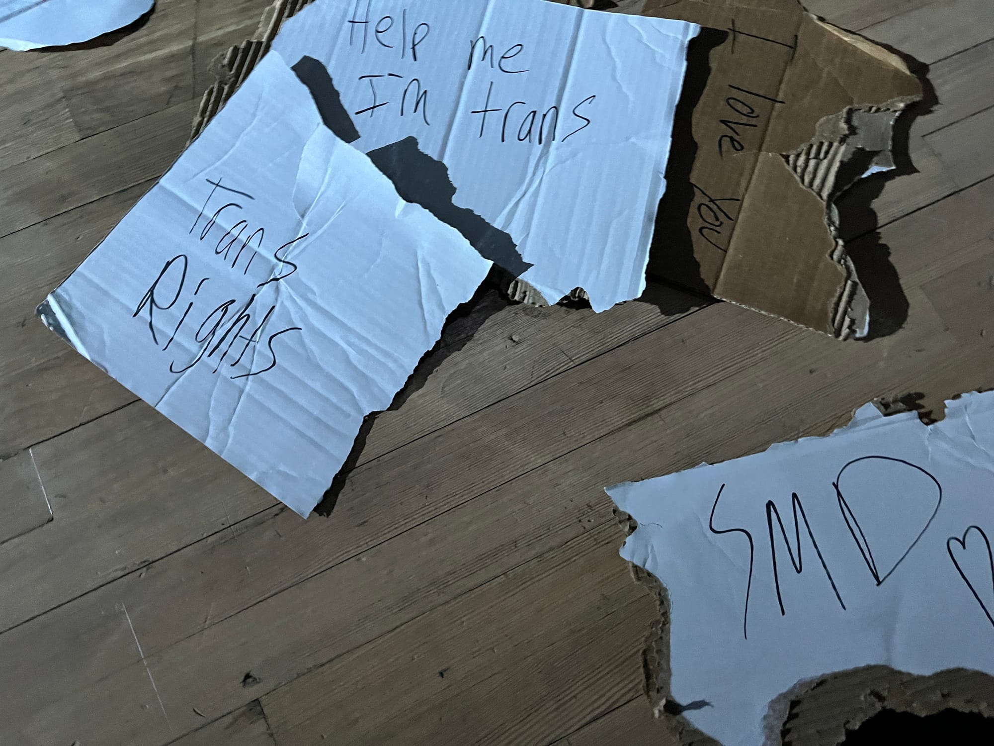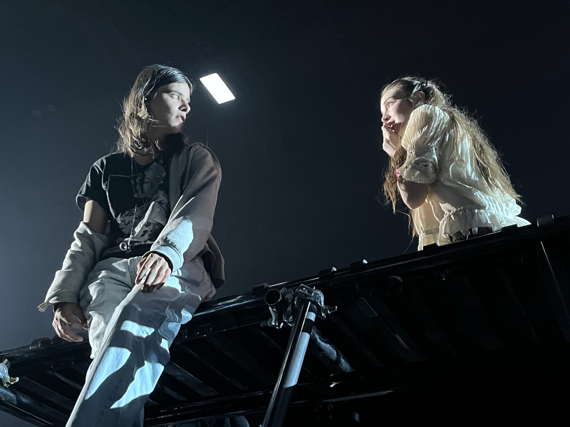 They are downtrodden by this unfair world, where oppressive adults destroy the climate and take away trans rights. That's as political as the show gets: tossed somewhere on the floor were a few ripped-up cardboard pieces with phrases like “Help me I'm trans” and “don’t touch my tits.” Surrounded by rings of spectators, they sing out their angst in hymns that recall Radiohead’s whimpering youth anthems, occasionally breaking into Rammstein-style heavy metal guitar distortions.