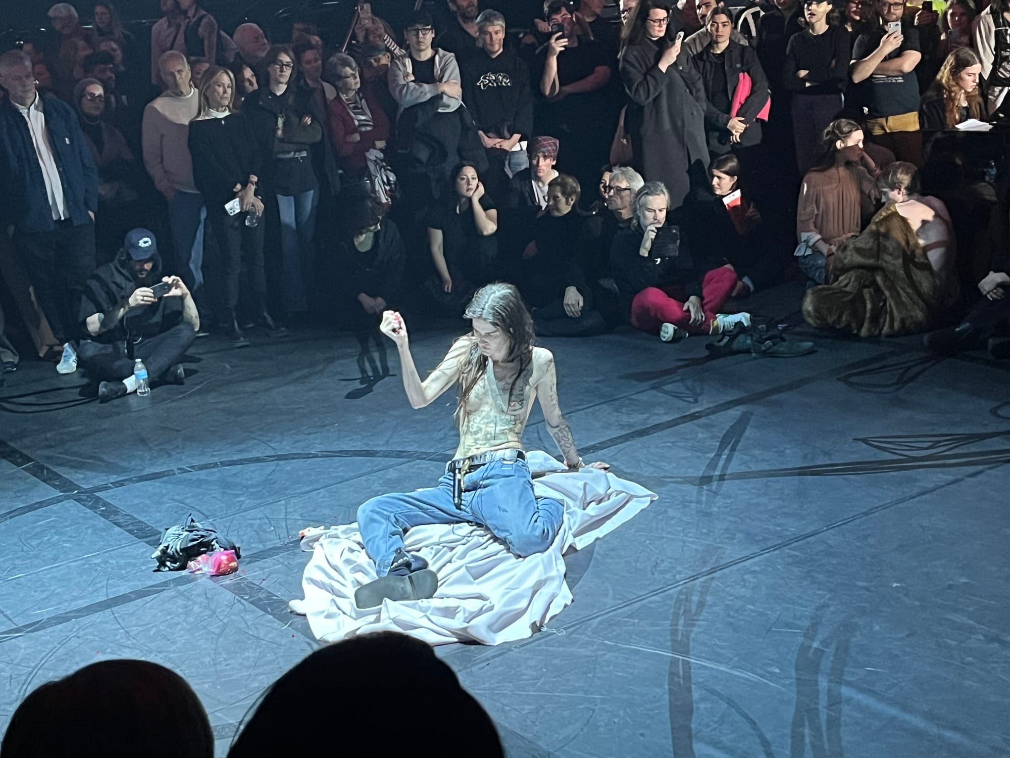 On opening night, the three-hour show was also a durational performance for the audience, made up of the who’s who of the art and performance worlds. Apart from having to be on their feet that long, the audience members were also seemingly required to perform coolness for each other. Two hours into the show, they were visibly yawning and spacing out. Maybe that time would have been better spent at a protest, a reading, or an organizing meeting with young people who are actually doing something to change the world.