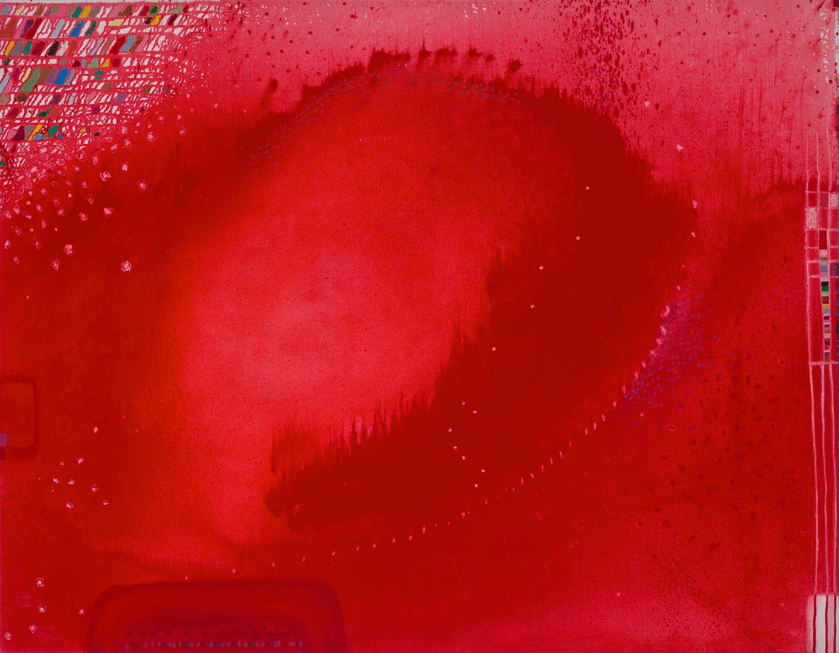 “Conflagration” (2019) came about as parts of California erupted in flames in the summer and fall of 2019. Neely felt “as though there was no air left, that it had been sucked out of that part of the world,” a feeling that returned with news of the fires in Australia that fall. Using red for the first time in a pour, she explained that the color could “capture the tightness I had in my throat, the suffocation.”