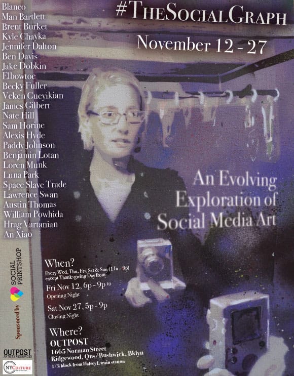 In two weeks, #TheSocialGraph will open at Outpost in Bushwick, Brooklyn and we’re incredibly excited. What is #TheSocialGraph? It is an evolving exploration of the burgeoning field of social media art and the relation of contemporary art with this populist tool as a medium, facilitator, and subject for art.