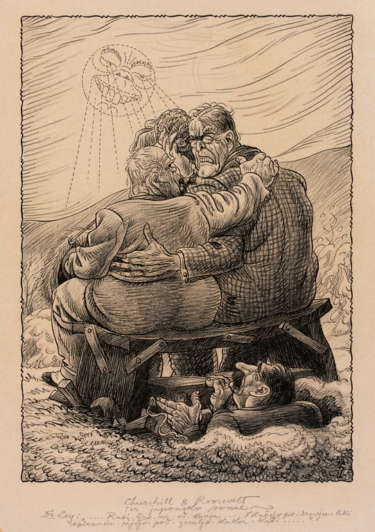 Hinko Smrekar’s illustrations and caricatures are some of the most scathing, critical portrayals of life and politics in 20th-century Eastern Europe. His bitingly grotesque images show leaders like Hitler, Mussolini, and Stalin as bloated, insatiable monsters who prey mercilessly on emaciated, powerless commoners. The artist’s outspoken attacks on politicians, the clergy, foreign interests, and business leaders appeared across the newspapers, magazines, and books of his day, and his rebellious, unfiltered artwork repeatedly landed him in court, jail, and even an internment camp.