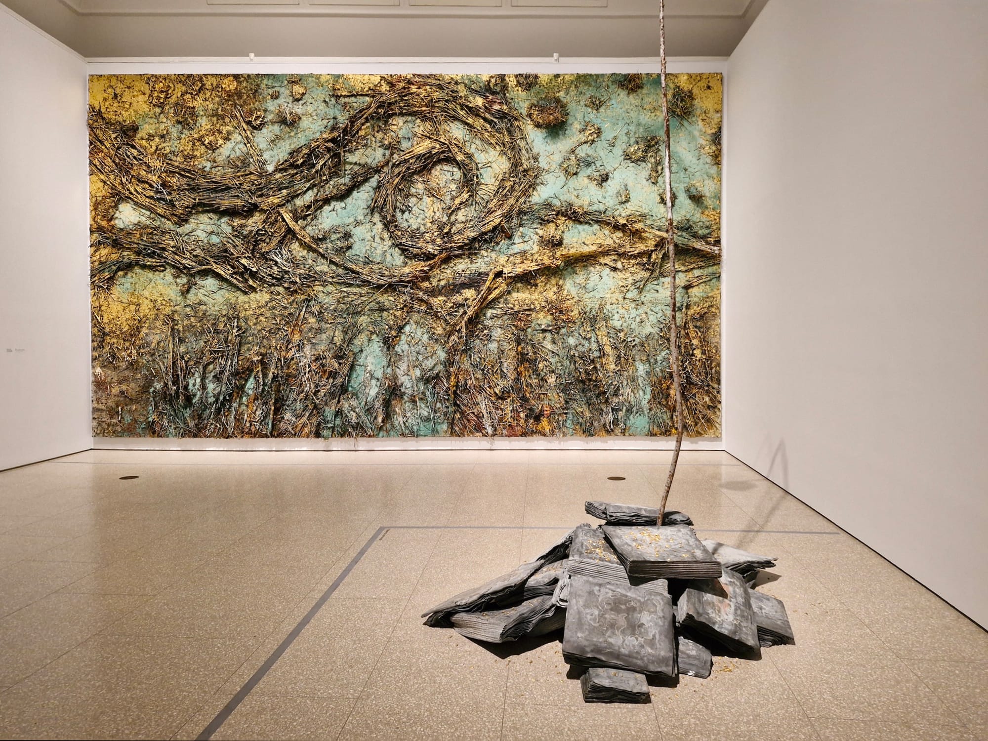 It is arguable that imparting a comprehensive understanding of van Gogh's impact on Kiefer requires the presentation of large numbers of both of their work (even if so, it'd require more of van Gogh than is represented here) and the guidance of Kiefer’s words. Indeed, the captions quoting Kiefer's thinking provide minimal insight: “In van Gogh, there is always something more, not in the sense of something extra or a bonus, the ‘something more’ is everything, the beyond-subatomic smallest that can no longer be represented and only grasped through mathematical abstraction as well as the biggest – beyond all light years.” Replace “van Gogh” with literally any artist, and these could be the words of a pretentious student explaining why X artist is just, like, the best ever, in a way you’ll never understand.
